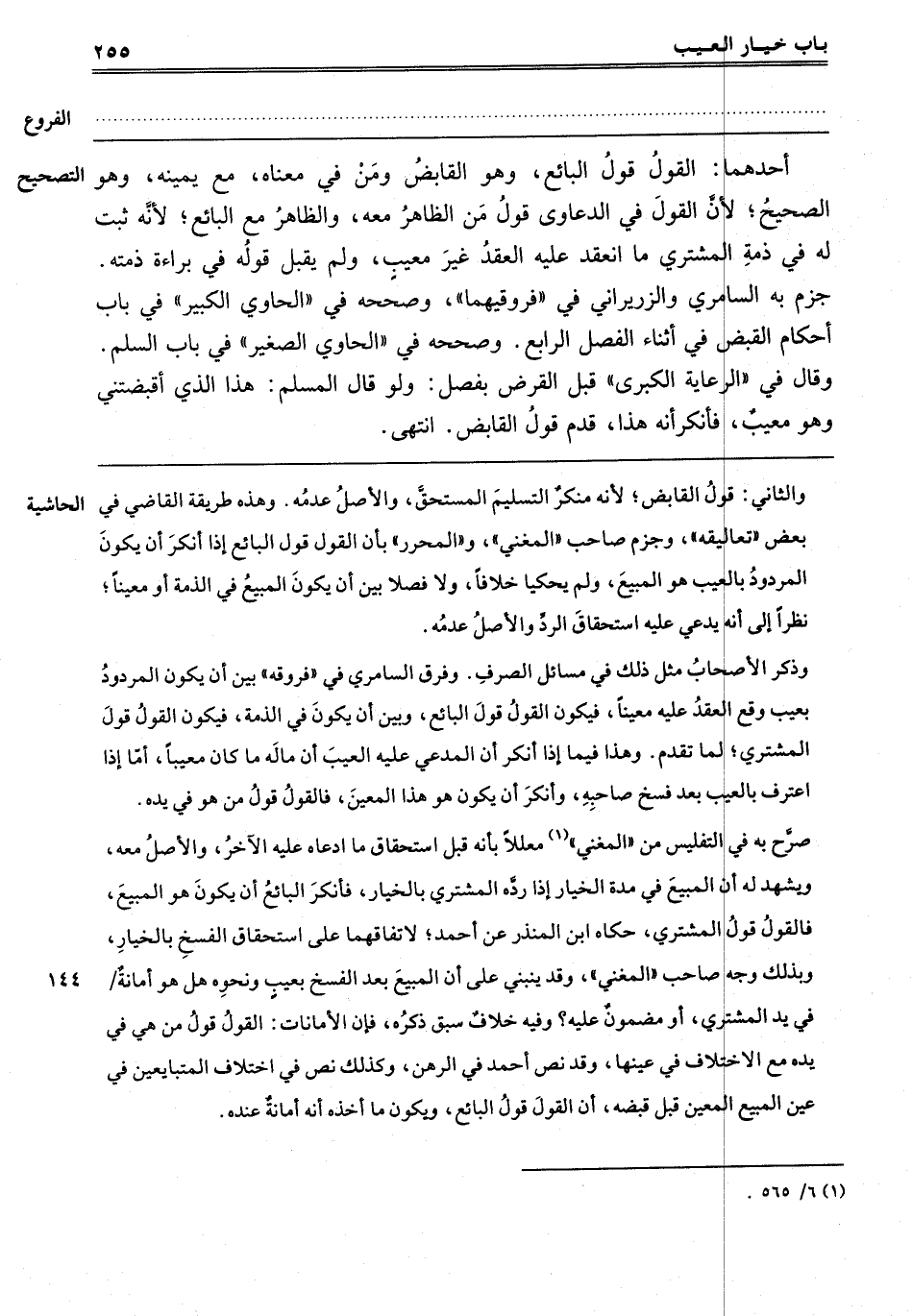 ـــــــــــــــــــــــــــــQ"أَحَدُهُمَا" الْقَوْلُ قَوْلُ الْبَائِعِ, وَهُوَ الْقَابِضُ وَمَنْ فِي مَعْنَاهُ, مَعَ يَمِينِهِ, وَهُوَ الصَّحِيحُ, لِأَنَّ الْقَوْلَ فِي الدَّعَاوَى قَوْلٌ مِنْ الظَّاهِرِ مَعَهُ, وَالظَّاهِرُ مَعَ الْبَائِعِ, لِأَنَّهُ ثَبَتَ لَهُ فِي ذِمَّةِ الْمُشْتَرِي مَا انْعَقَدَ عَلَيْهِ الْعَقْدُ مَعِيبٌ, وَلَمْ يُقْبَلْ قَوْلُهُ فِي بَرَاءَةِ ذِمَّتِهِ, جَزَمَ بِهِ السَّامِرِيُّ وَالزَّرِيرَانِيُّ فِي فَرُوقَيْهِمَا, وَصَحَّحَهُ فِي الْحَاوِي الْكَبِيرِ فِي بَابِ أَحْكَامِ الْقَبْضِ فِي أَثْنَاءِ الْفَصْلِ الرَّابِعِ, وَصَحَّحَهُ فِي الْحَاوِي الصَّغِيرِ فِي بَابِ السَّلَمِ. وَقَالَ فِي الرِّعَايَةِ الْكُبْرَى: قَبْلَ الْقَرْضِ بِفَصْلٍ: وَلَوْ قَالَ الْمُسَلِّمُ: هَذَا الَّذِي أَقَبَضْتنِي وَهُوَ مَعِيبٌ, فَأَنْكَرَ أَنَّهُ هَذَا, قُدِّمَ قَوْلُ الْقَابِضِ, انْتَهَى