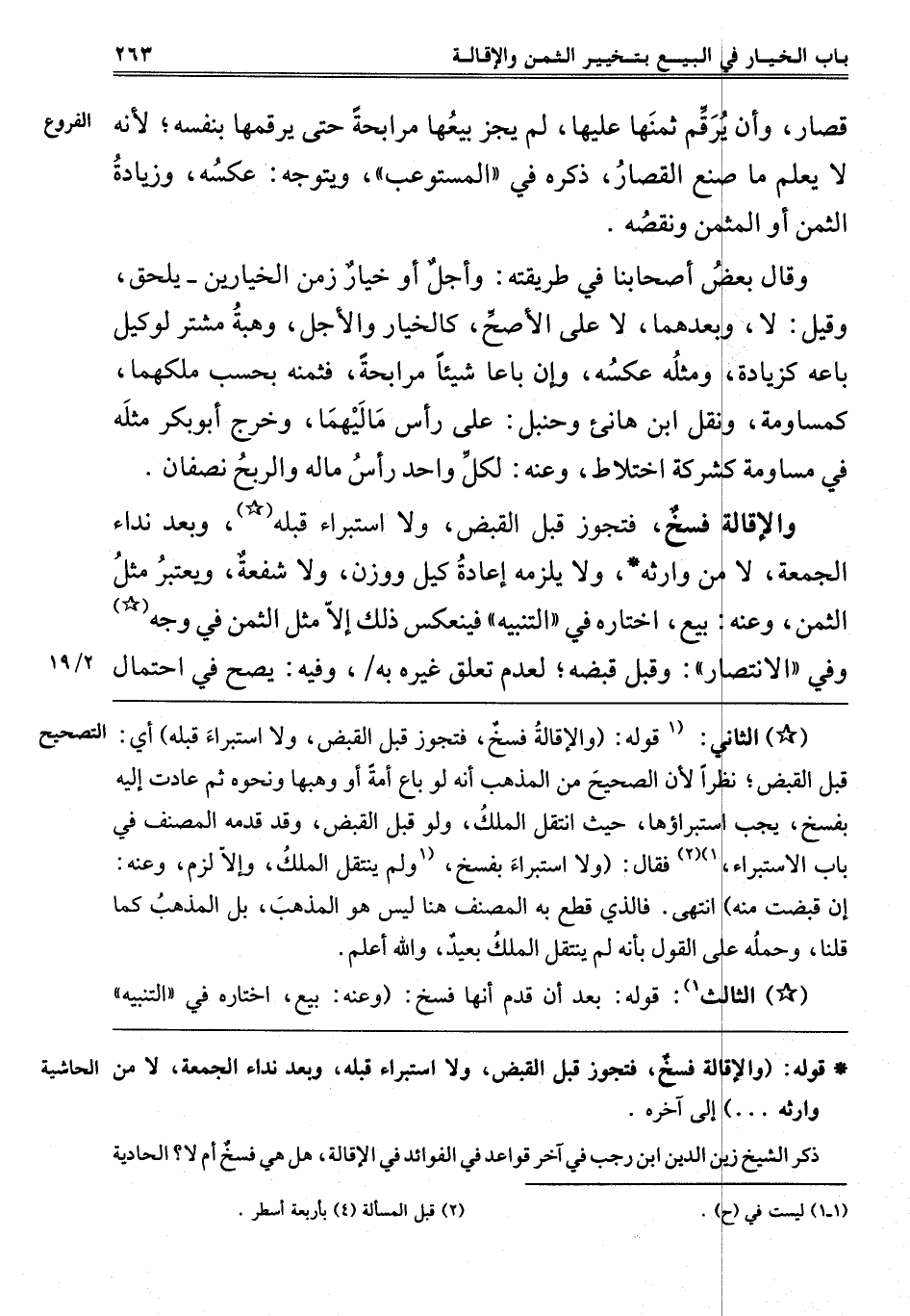 وَالْإِقَالَةُ فَسْخٌ , فَتَجُوزُ قَبْلَ الْقَبْضِ, وَلَا اسْتِبْرَاءَ قَبْلَهُ "*" وَبَعْدَ نِدَاءِ الْجُمُعَةِ, لَا مِنْ وَارِثِهِ, وَلَا يَلْزَمُ إعَادَةُ كَيْلٍ وَوَزْنٍ, وَلَا شُفْعَةَ, وَيُعْتَبَرُ مِثْلُ الثَّمَنِ, وَعَنْهُ: بَيْعٌ, اخْتَارَهُ أَبُو بَكْرٍ فِي التَّنْبِيهِ فَيَنْعَكِسُ ذَلِكَ إلَّا مِثْلَ الثَّمَنِ فِي وَجْهٍ "*" وَفِي الِانْتِصَارِ: وَقَبْلَ قَبْضِهِ, لعدم تَعَلُّقِ غَيْرِهِ بِهِ, وَفِيهِ: يَصِحُّ فِي احْتِمَالٍ