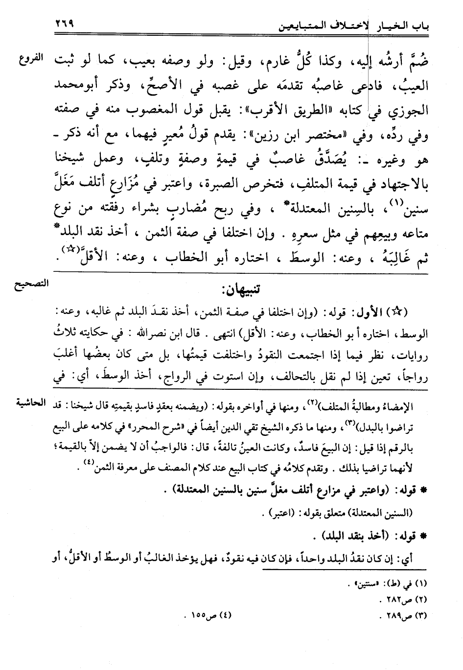 "*" الْأَوَّلُ: قَوْلُهُ: وَإِنْ اخْتَلَفَا فِي صِفَةِ الثمن أخذ نقد البلد ثم غالبه, وعنه: الْوَسَطُ, اخْتَارَهُ أَبُو الْخَطَّابِ, وَعَنْهُ: الْأَقَلُّ, انْتَهَى. قَالَ ابْنُ نَصْرِ اللَّهِ: فِي حِكَايَتِهِ ثَلَاثَ رِوَايَاتٍ نَظَرَ فِيمَا إذَا اجْتَمَعَتْ النُّقُودُ وَاخْتَلَفَتْ قِيمَتُهَا, بَلْ مَتَى كَانَ بَعْضُهَا أَغْلَبَ رَوَاجًا تَعَيَّنَ إذَا لَمْ نَقُلْ بِالتَّحَالُفِ, وَإِنْ اسْتَوَتْ في الرواج أخذ الوسط, أي في