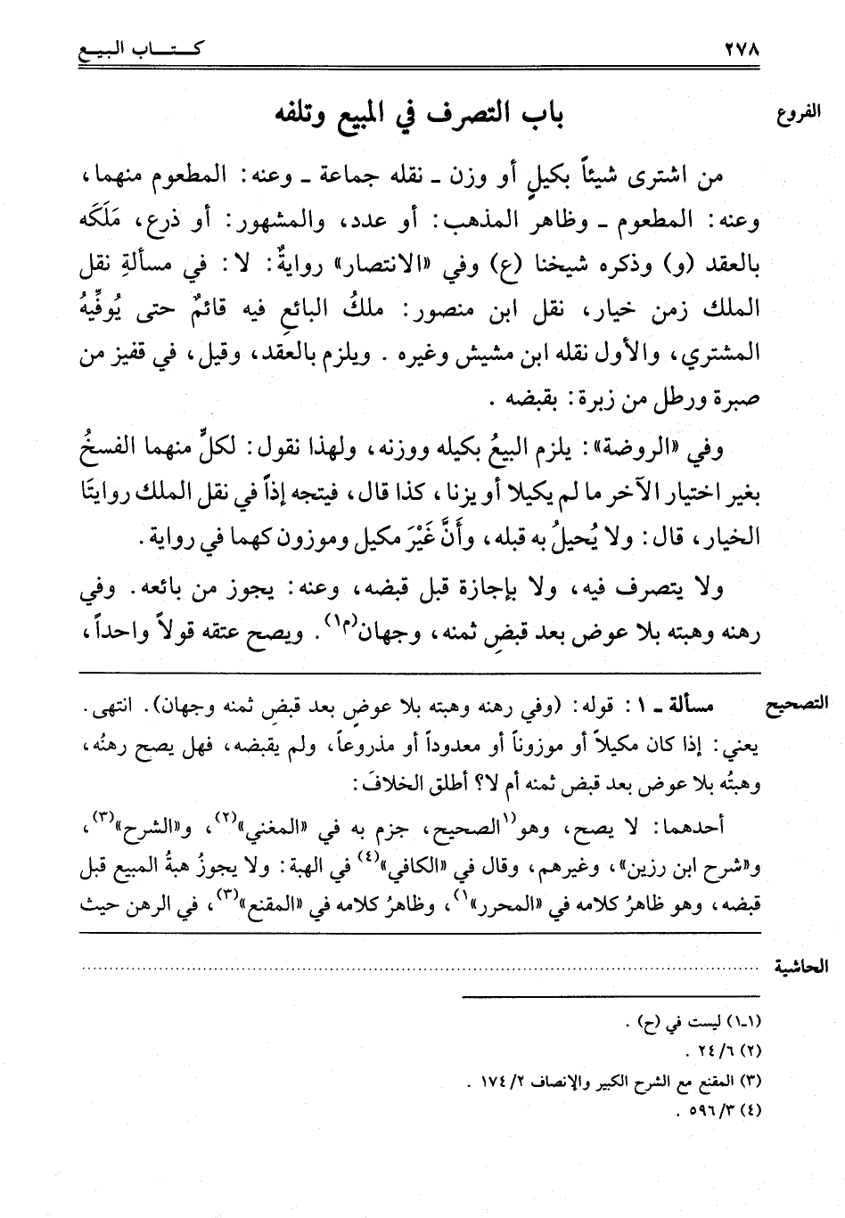 ـــــــــــــــــــــــــــــQ"مَسْأَلَةٌ 1" قَوْلُهُ: وَفِي رَهْنِهِ وَهِبَتِهِ بِلَا عِوَضٍ بَعْدَ قَبْضِ ثَمَنِهِ وَجْهَانِ, انْتَهَى. يَعْنِي إذَا كَانَ مَكِيلًا أَوْ مَوْزُونًا أَوْ مَعْدُودًا أَوْ مَذْرُوعًا وَلَمْ يَقْبِضْهُ فَهَلْ يَصِحُّ رَهْنُهُ وَهِبَتُهُ بِلَا عِوَضٍ بَعْدَ قَبْضِ ثَمَنِهِ أَمْ لَا؟ أَطْلَقَ الْخِلَافَ: