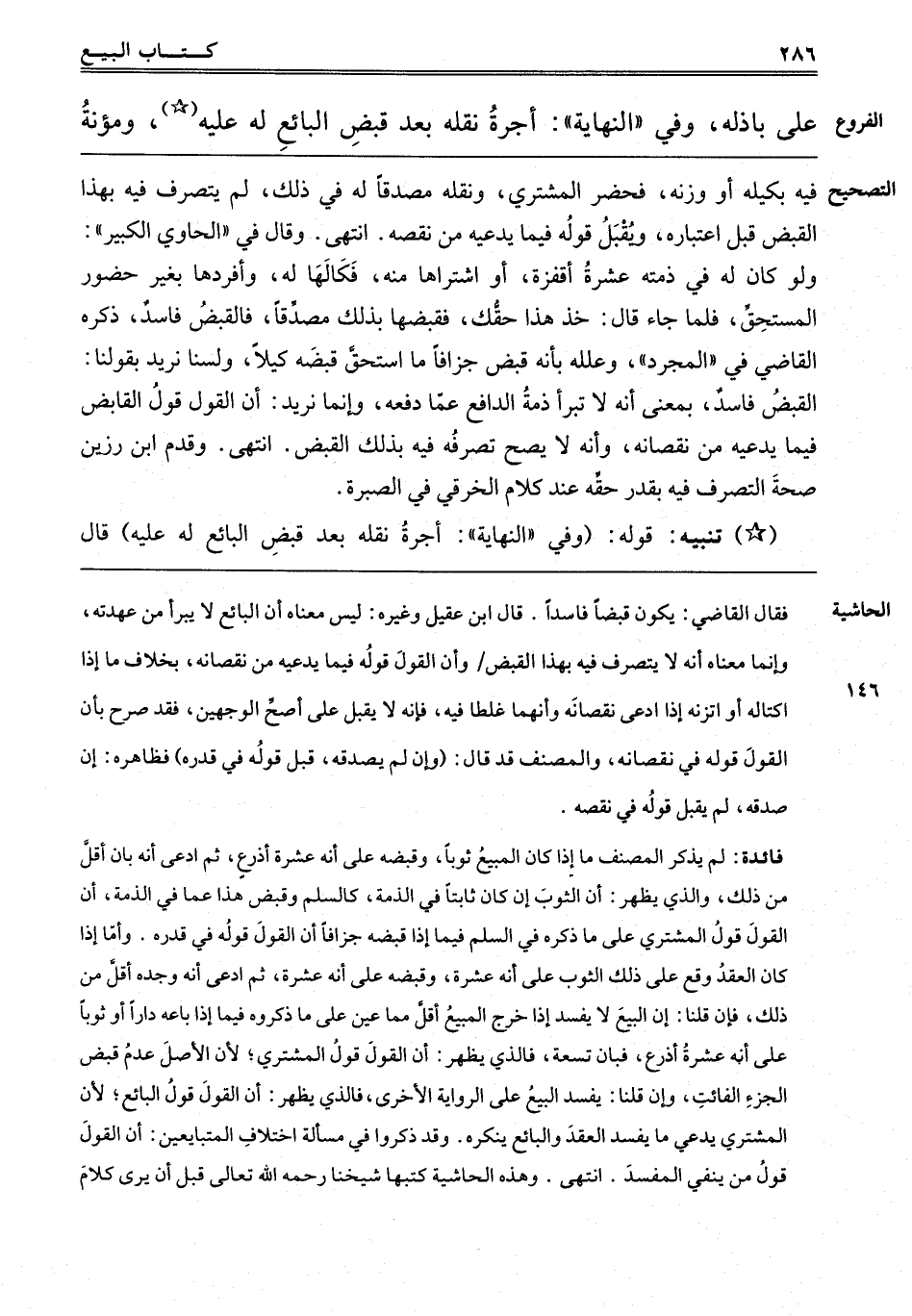 "*" تَنْبِيهٌ: قَوْلُهُ: وَفِي النِّهَايَةِ أُجْرَةُ نَقْلِهِ بَعْدَ قبض البائع له عليه, قال