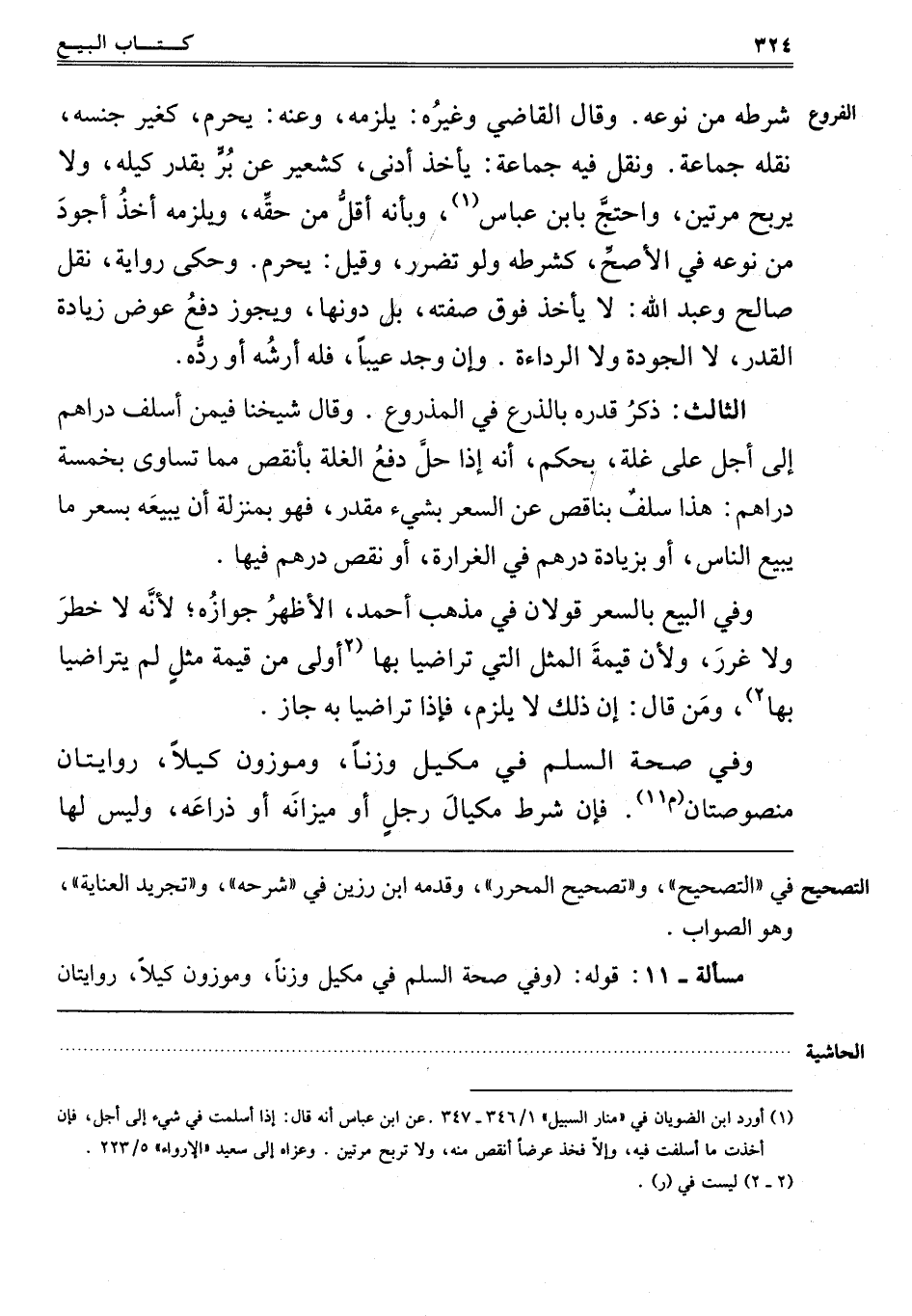 ـــــــــــــــــــــــــــــQفِي التَّصْحِيحِ وَتَصْحِيحِ الْمُحَرَّرِ, وَقَدَّمَهُ ابْنُ رَزِينٍ في شرحه وتجريد العناية, وهو الصواب.
