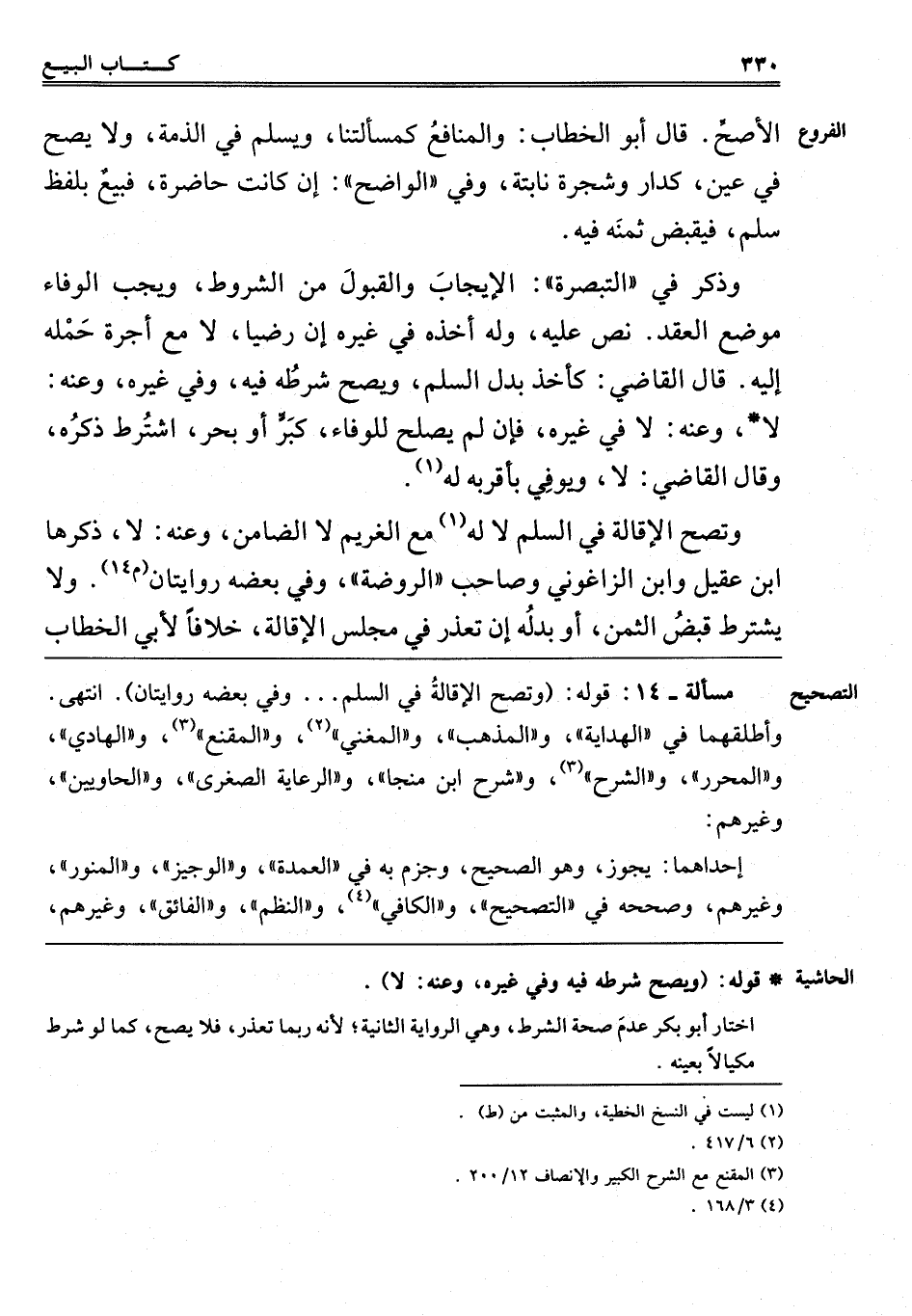 ـــــــــــــــــــــــــــــQ"مَسْأَلَةٌ 14" قَوْلُهُ: وَتَصِحُّ الْإِقَالَةُ فِي السَّلَمِ. وَفِي بعضه روايتان, انتهى. وَأَطْلَقَهُمَا فِي الْهِدَايَةِ وَالْمُذْهَبِ وَالْمُغْنِي2 وَالْمُقْنِعِ3 وَالْهَادِي وَالْمُحَرَّرِ وَالشَّرْحِ3 وَشَرْحِ ابْنِ منجا وَالرِّعَايَةِ الصُّغْرَى وَالْحَاوِيَيْنِ وَغَيْرِهِمْ. "إحْدَاهُمَا" يَجُوزُ, وَهُوَ الصَّحِيحُ, وَجَزَمَ بِهِ فِي الْعُمْدَةِ وَالْوَجِيزِ وَالْمُنَوِّرِ وَغَيْرِهِمْ وَصَحَّحَهُ فِي التَّصْحِيحِ وَالْكَافِي4 وَالنَّظْمِ وَالْفَائِقِ وغيرهم,
