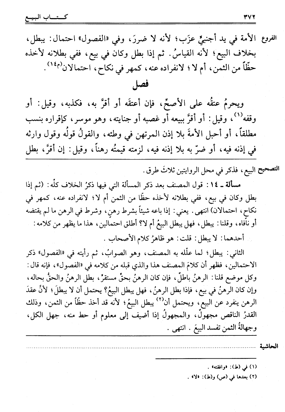 فصل: وَيَحْرُمُ عِتْقُهُ, عَلَى الْأَصَحِّ