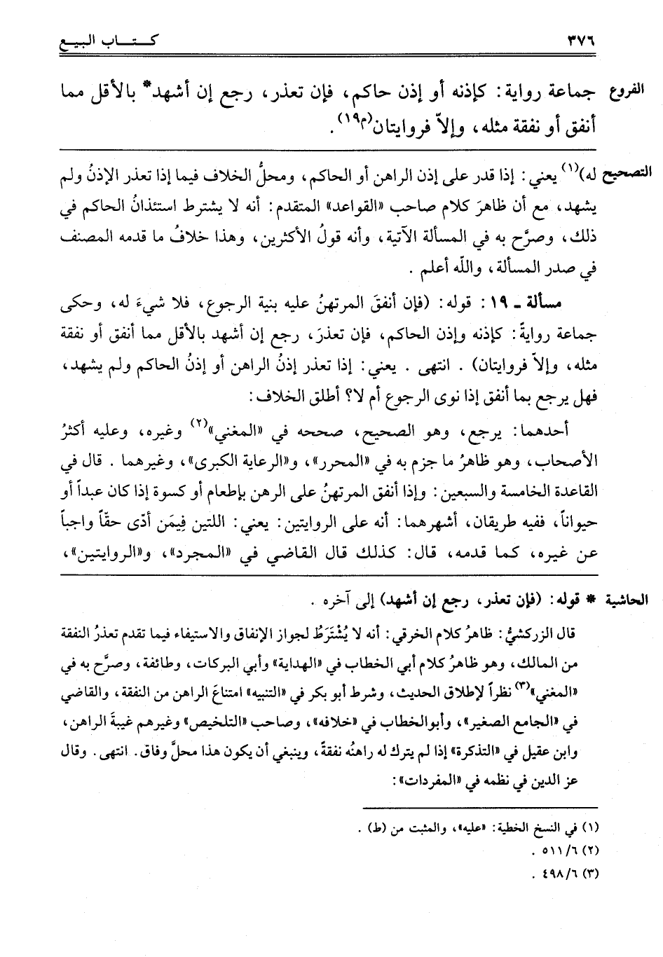 "مَسْأَلَةٌ 19" قَوْلُهُ: فَإِنْ أَنْفَقَ الْمُرْتَهِنُ عَلَيْهِ بِنِيَّةِ الرُّجُوعِ فَلَا شَيْءَ لَهُ وَحَكَى جَمَاعَةٌ رِوَايَةً: كَإِذْنِهِ وَإِذْنِ الْحَاكِمِ, فَإِنْ تَعَذَّرَ رَجَعَ إنْ أَشْهَدَ بِالْأَقَلِّ مِمَّا أَنْفَقَ أَوْ نَفَقَةِ مِثْلِهِ, وَإِلَّا فَرِوَايَتَانِ, انْتَهَى, يَعْنِي إذَا تَعَذَّرَ إذْنُ الرَّاهِنِ أَوْ إذْنِ الْحَاكِمِ وَلَمْ يَشْهَدْ, فَهَلْ يَرْجِعُ بِمَا أَنْفَقَ إذَا نَوَى الرُّجُوعَ أَمْ لا؟ أطلق الخلاف.