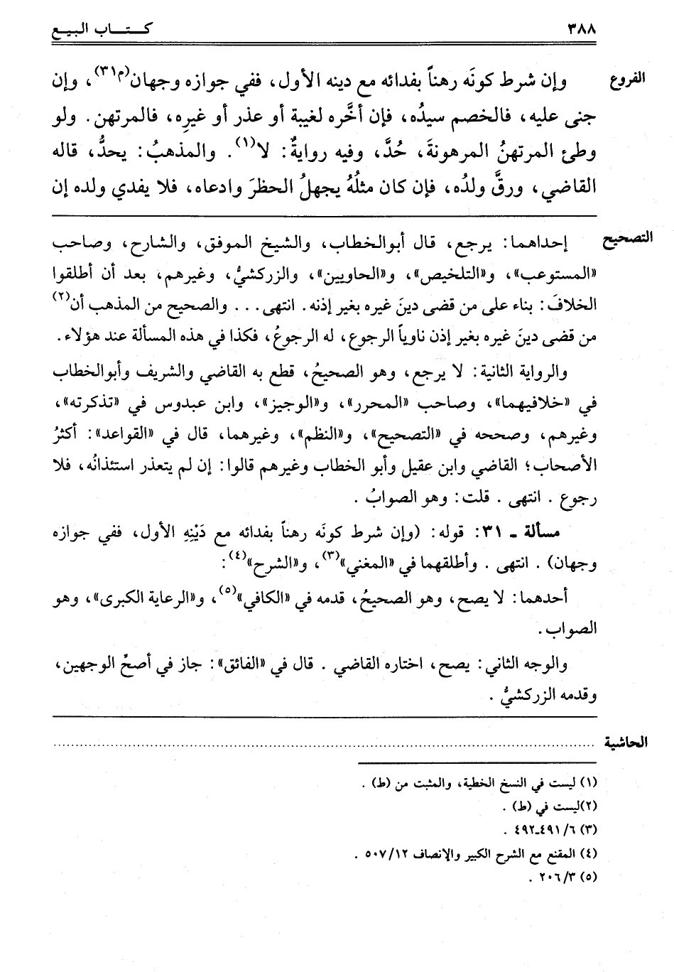 "مَسْأَلَةٌ 31" قَوْلُهُ: وَإِنْ شَرَطَ كَوْنَهُ رَهْنًا بِفِدَائِهِ مَعَ دَيْنِهِ الْأَوَّلِ فَفِي جَوَازِهِ وَجْهَانِ, انْتَهَى. وَأَطْلَقَهُمَا فِي الْمُغْنِي3 وَالشَّرْحِ4.