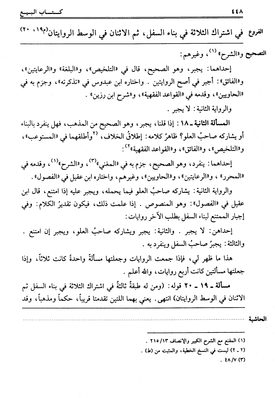 فِي اشْتِرَاكِ الثَّلَاثَةِ فِي بِنَاءِ السُّفْلِ, ثُمَّ الاثنان في الوسط الروايتان "م 19 و 20"