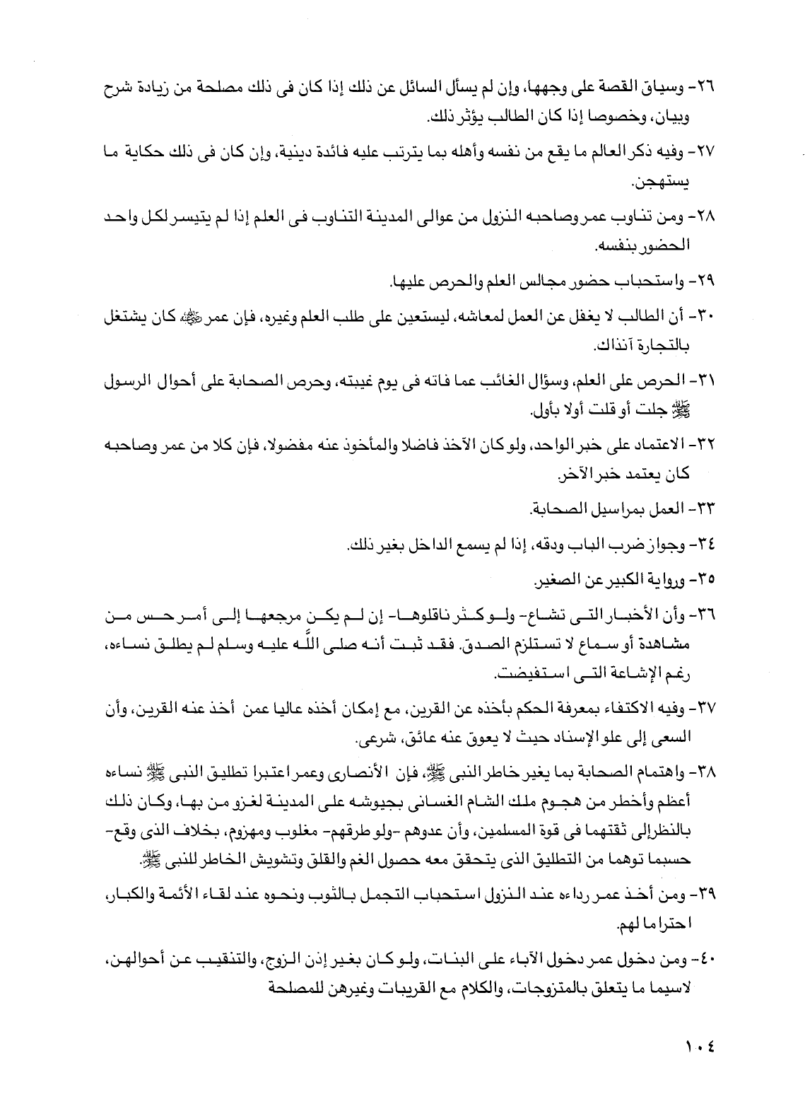 30 - أن الطالب لا يغفل عن العمل لمعاشه، ليستعين على طلب العلم وغيره، فإن عمر رضي الله عنه كان يشتغل بالتجارة آنذاك.