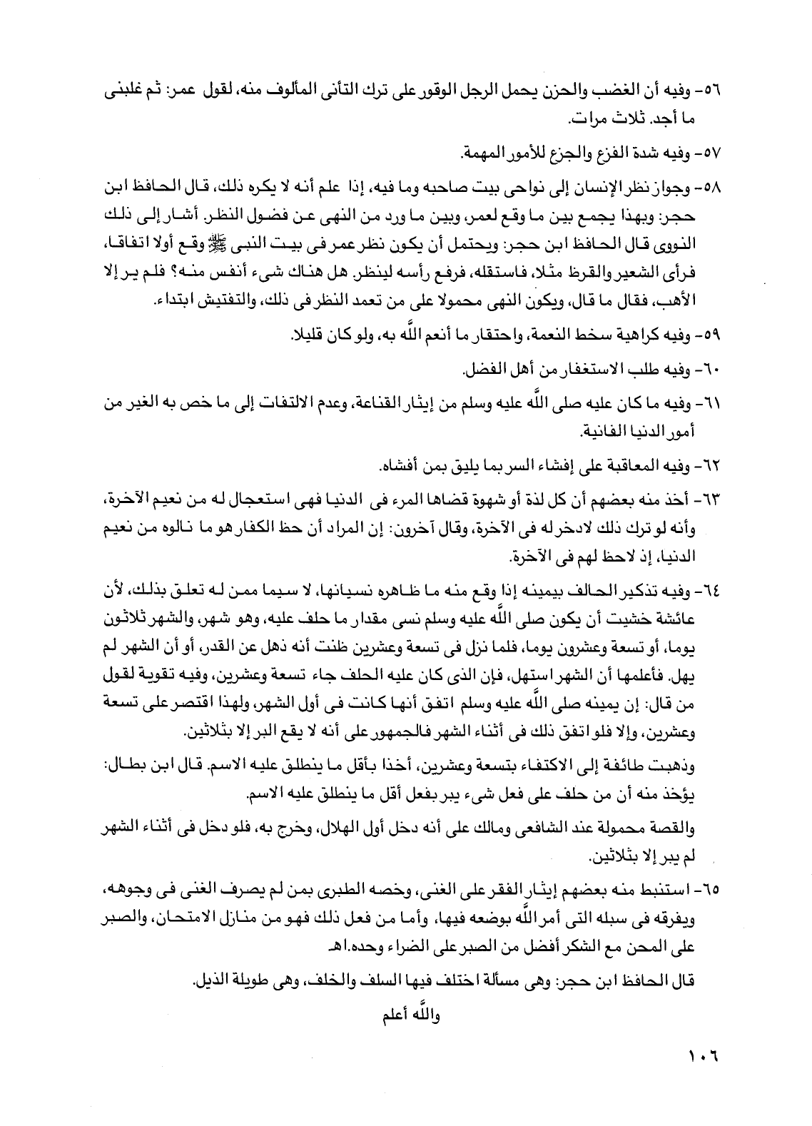 56 - وفيه أن الغضب والحزن يحمل الرجل الوقور على ترك التأني المألوف منه، لقول عمر: ثم غلبني ما أجد. ثلاث مرات.