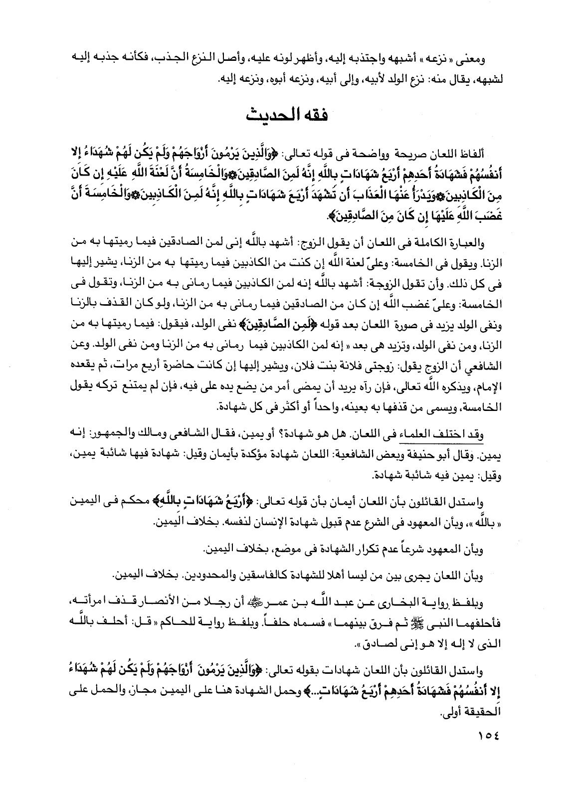 والعبارة الكاملة في اللعان أن يقول الزوج: أشهد بالله إني لمن الصادقين فيما رميتها به من الزنا. ويقول في الخامسة: وعلي لعنة الله إن كنت من الكاذبين فيما رميتها به من الزنا، ويشير إليها في كل ذلك. وأن تقول الزوجة: أشهد بالله إنه لمن الكاذبين فيما رماني به من الزنا، وتقول في الخامسة: وعلي غضب الله إن كان من الصادقين فيما رماني به من الزنا، ولو كان القذف بالزنا ونفي الولد يزيد في صورة اللعان بعد قوله {لمن الصادقين} نفي الولد، فيقول: فيما رميتها به من الزنا، ومن نفي الولد، وتزيد هي بعد "إنه لمن الكاذبين فيما رماني به من الزنا ومن نفي الولد. وعن الشافعي أن الزوج يقول: زوجتي فلانة بنت فلان، ويشير إليها إن كانت حاضرة أربع مرات، ثم يقعده الإمام، ويذكره الله تعالى، فإن رآه يريد أن يمضي أمر من يضع يده على فيه، فإن لم يمتنع تركه يقول الخامسة، ويسمى من قذفها به بعينه، واحدًا أو أكثر في كل شهادة.