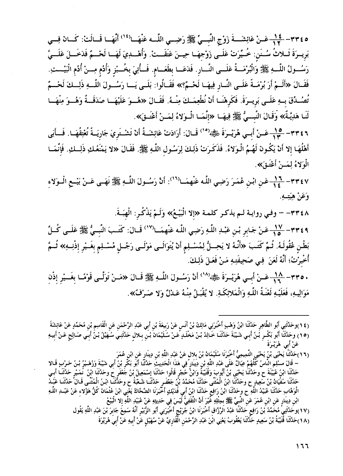 3346 - عن أبي هريرة رضي الله عنه قال: أرادت عائشة أن تشتري جارية تعتقها. فأبى أهلها إلا أن يكون لهم الولاء. فذكرت ذلك لرسول الله صلى الله عليه وسلم. فقال "لا يمنعك ذلك. فإنما الولاء لمن أعتق".