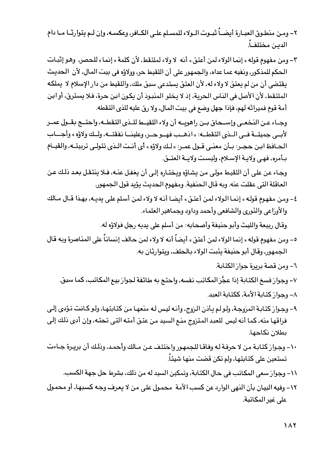 10 - وجواز كتابة من لا حرفة له وفاقًا للجمهور واختلف عن مالك وأحمد، وذلك أن بريرة جاءت تستعين على كتابتها، ولم تكن قضت منها شيئًا.