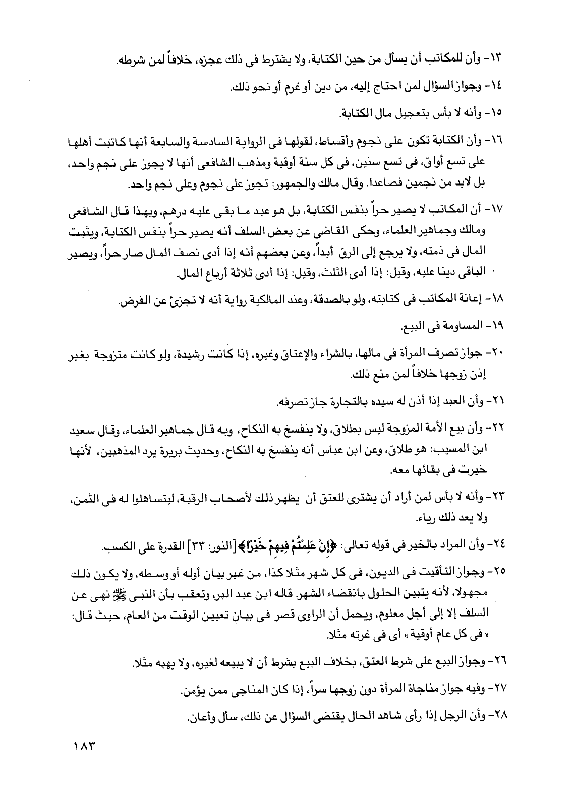 24 - وأن المراد بالخير في قوله تعالى: {إن علمتم فيهم خيرًا} [النور: 33] القدرة على الكسب.