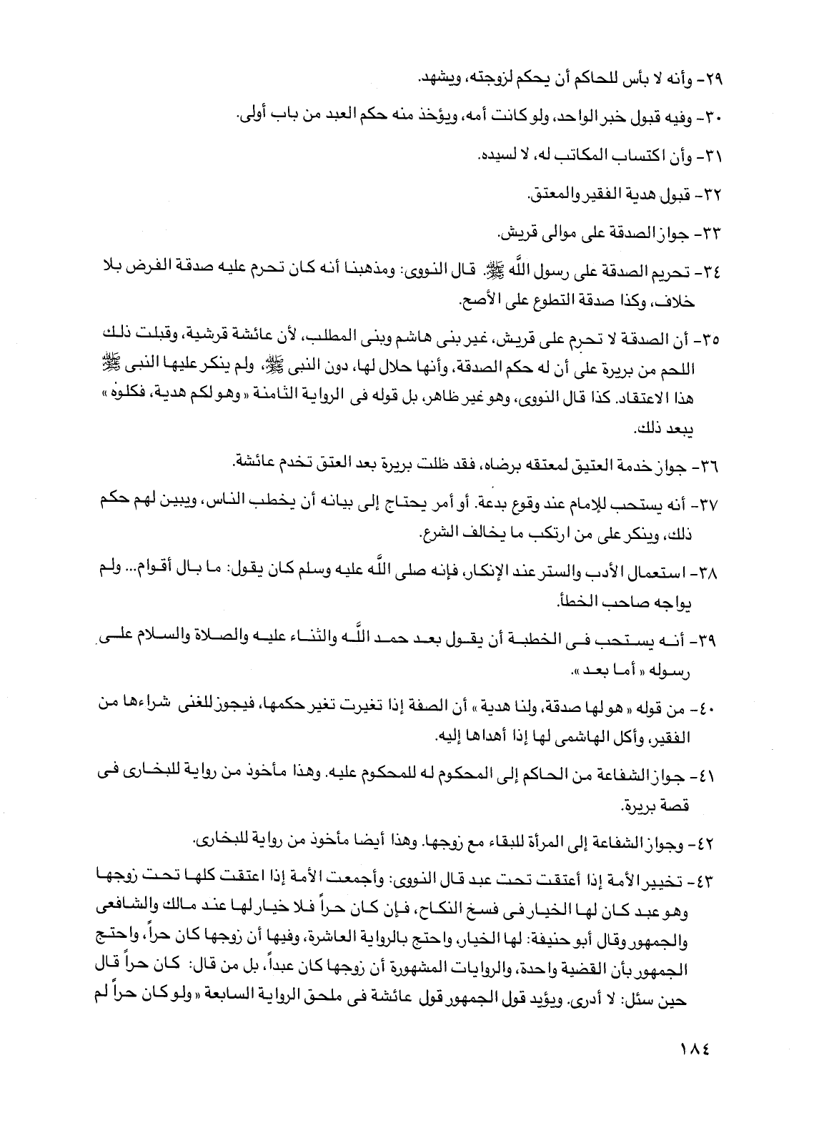 36 - جواز خدمة العتيق لمعتقه برضاه، فقد ظلت بريرة بعد العتق تخدم عائشة.