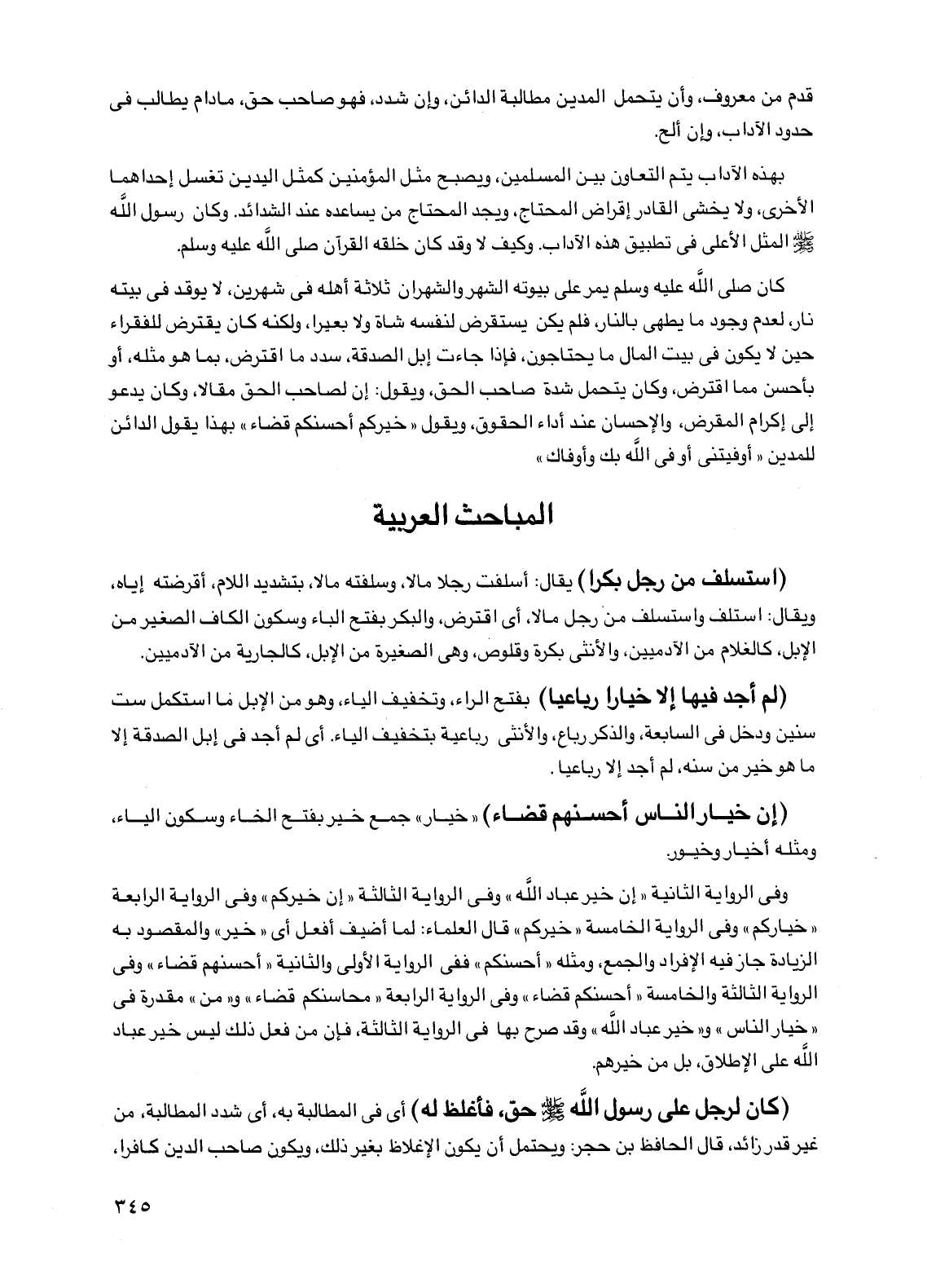 (إن خيار الناس أحسنهم قضاء) "خيار" جمع خير بفتح الخاء وسكون الياء، ومثله أخيار وخيور.