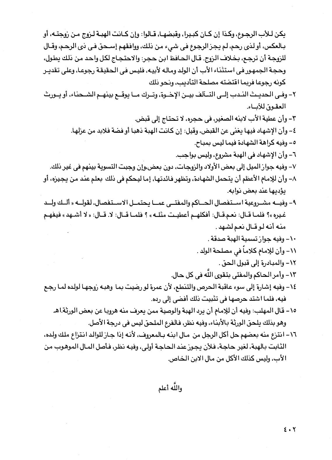 6 - وأن الإشهاد في الهبة مشروع، وليس بواجب.