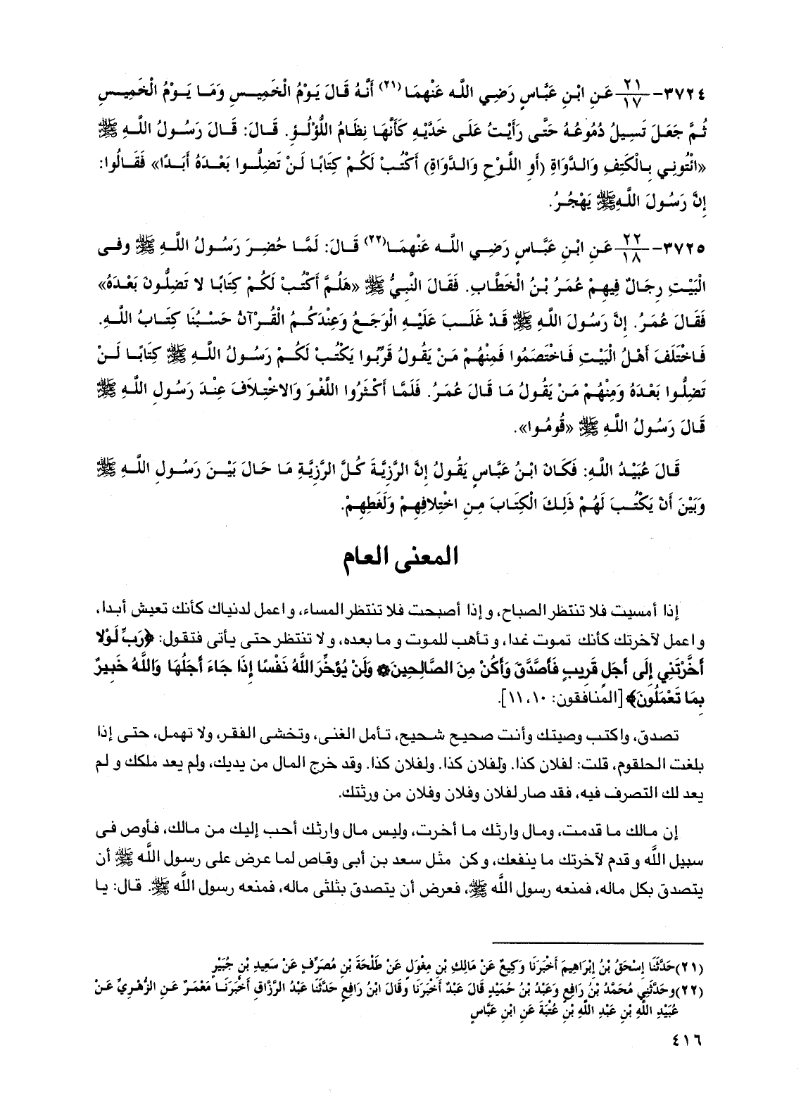 تصدق، واكتب وصيتك وأنت صحيح شحيح، تأمل الغنى، وتخشى الفقر، ولا تهمل، حتى إذا بلغت الحلقوم، قلت: لفلان كذا. ولفلان كذا. ولفلان كذا. وقد خرج المال من يديك، ولم يعد ملكك ولم يعد لك التصرف فيه، فقد صار لفلان وفلان وفلان من ورثتك.