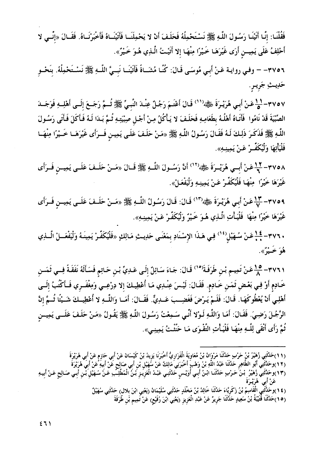 3759 - عن أبي هريرة رضي الله عنه قال: قال رسول الله صلى الله عليه وسلم "من حلف على يمين فرأى غيرها خيرًا منها فليأت الذي هو خير وليكفر عن يمينه".