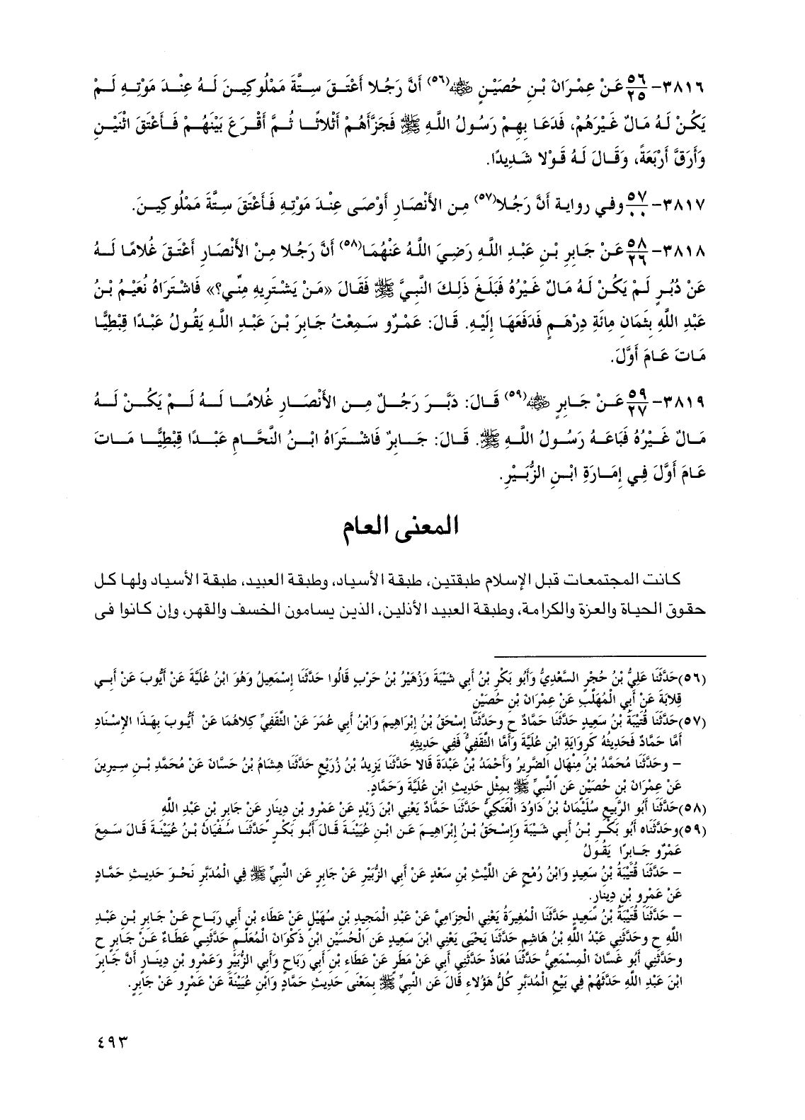 3819 - عن جابر رضي الله عنه قال: دبر رجل من الأنصار غلامًا له لم يكن له مال غيره فباعه رسول الله صلى الله عليه وسلم. قال: جابر فاشتراه ابن النحام عبدًا قبطيًا مات عام أول في إمارة ابن الزبير.