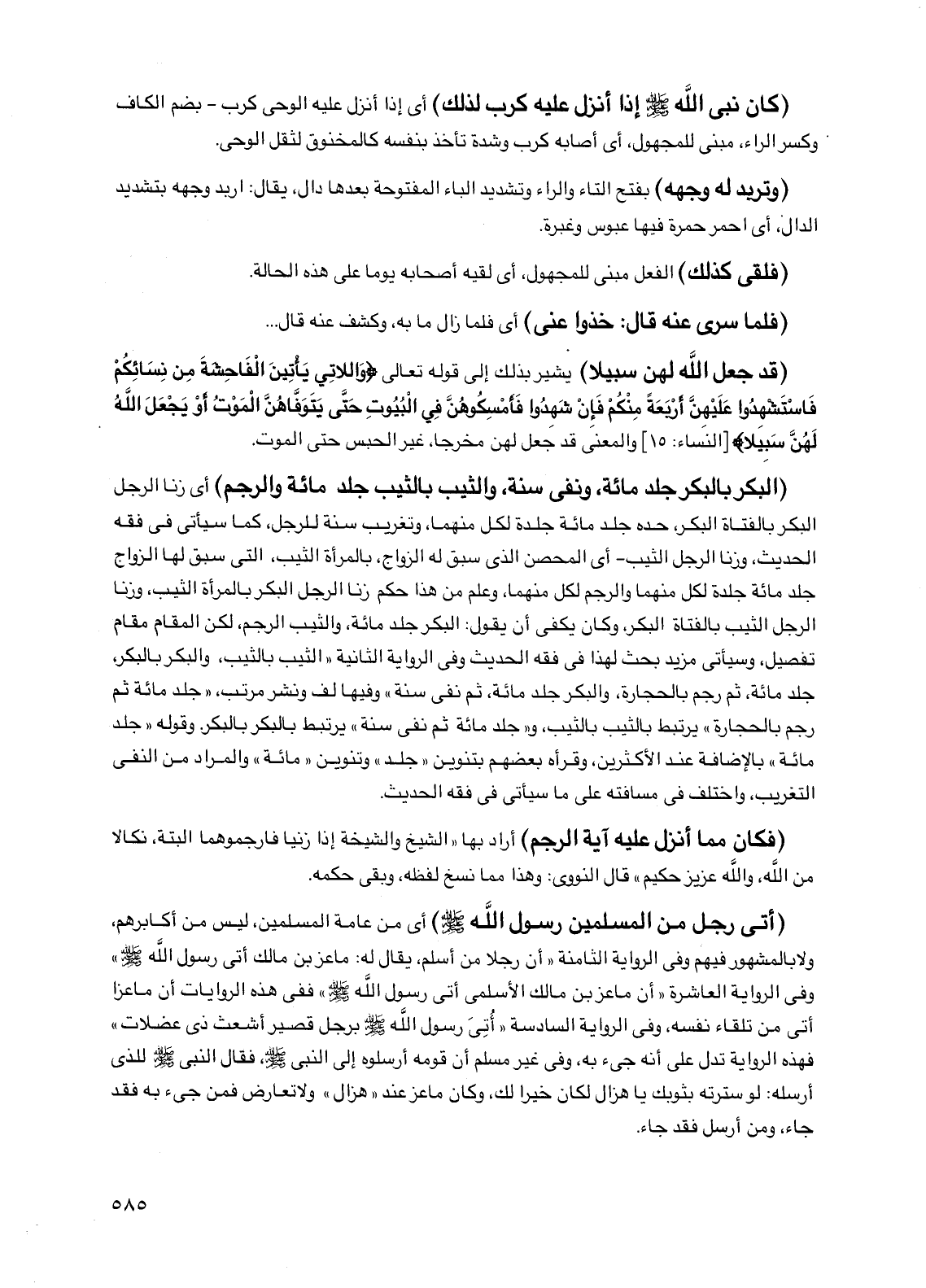 (قد جعل الله لهن سبيلا) يشير بذلك إلى قوله تعالى {واللاتي يأتين الفاحشة من نسائكم فاستشهدوا عليهن أربعة منكم فإن شهدوا فأمسكوهن في البيوت حتى يتوفاهن الموت أو يجعل الله لهن سبيلا} [النساء: 15] والمعنى قد جعل لهن مخرجا، غير الحبس حتى الموت.