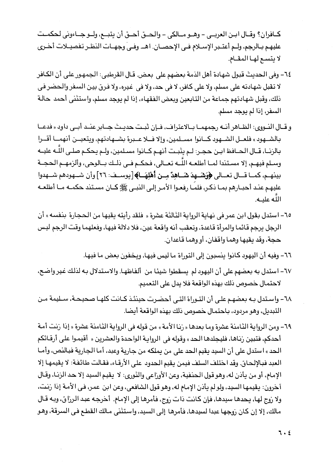 كافران؟ وقال ابن العربي - وهو مالكي - والحق أحق أن يتبع، ولو جاءوني لحكمت عليهم بالرجم، ولم أعتبر الإسلام في الإحصان. اهـ وفي وجهات النظر تفصيلات أخرى لا يتسع لها المقام.