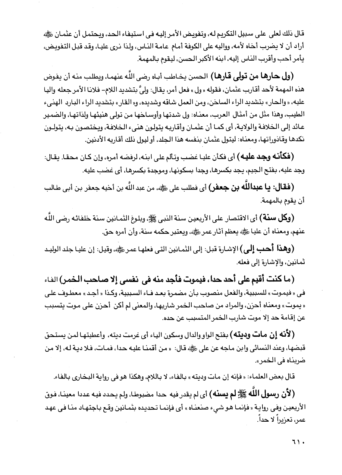 قال ذلك لعلي على سبيل التكريم له، وتفويض الأمر إليه في استيفاء الحد، ويحتمل أن عثمان رضي الله عنه أراد أن لا يضرب أخاه لأمه، وواليه على الكوفة أمام عامة الناس، ولذا نرى عليًا، وقد قبل التفويض، يأمر أحب وأقرب الناس إليه، ابنه الأكبر الحسن، ليقوم بالمهمة.