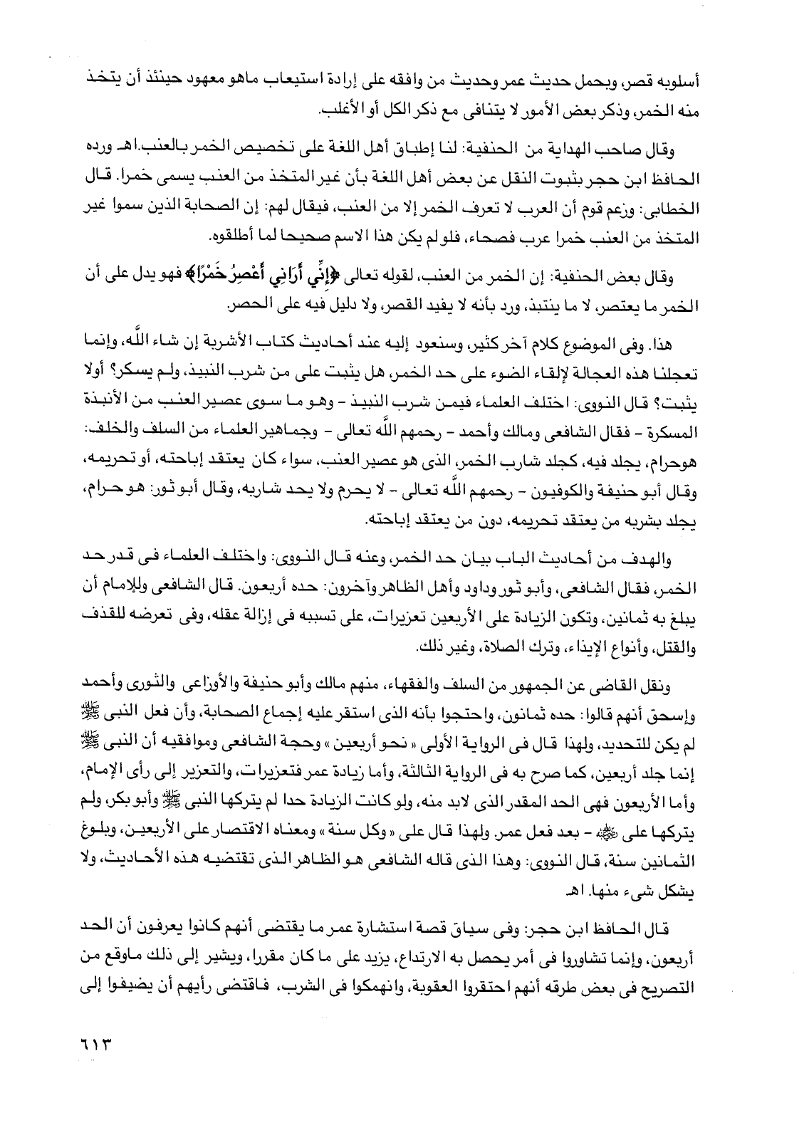 هذا. وفي الموضوع كلام آخر كثير، وسنعود إليه عند أحاديث كتاب الأشربة إن شاء الله، وإنما تعجلنا هذه العجالة لإلقاء الضوء على حد الخمر، هل يثبت على من شرب النبيذ، ولم يسكر؟ أو لا يثبت؟ قال النووي: اختلف العلماء فيمن شرب النبيذ - وهو ما سوى عصير العنب من الأنبذة المسكرة - فقال الشافعي ومالك وأحمد - رحمهم الله تعالى - وجماهير العلماء من السلف والخلف: هو حرام، يجلد فيه، كجلد شارب الخمر، الذي هو عصير العنب، سواء كان يعتقد إباحته، أو تحريمه، وقال أبو حنيفة والكوفيون - رحمهم الله تعالى - لا يحرم ولا يحد شاربه، وقال أبو ثور: هو حرام، يجلد بشربه من يعتقد تحريمه، دون من يعتقد إباحته.