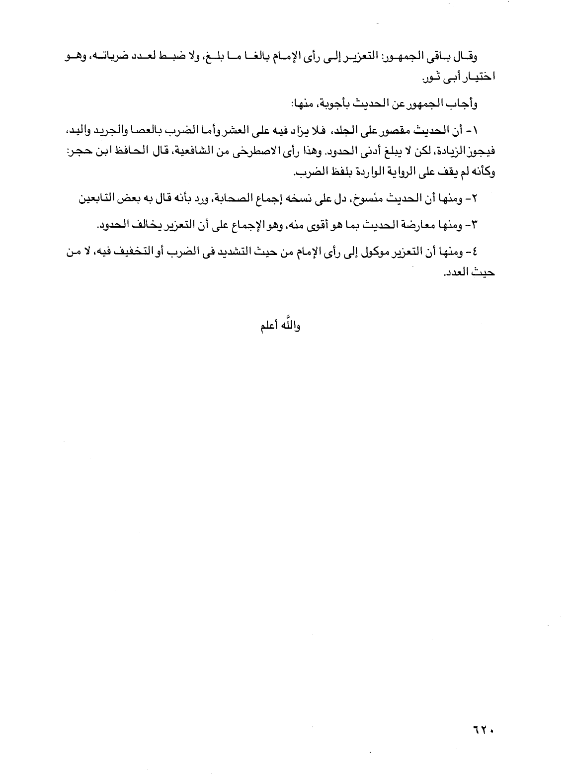 وقال باقي الجمهور: التعزير إلى رأي الإمام بالغًا ما بلغ، ولا ضبط لعدد ضرباته، وهو اختيار أبي ثور.