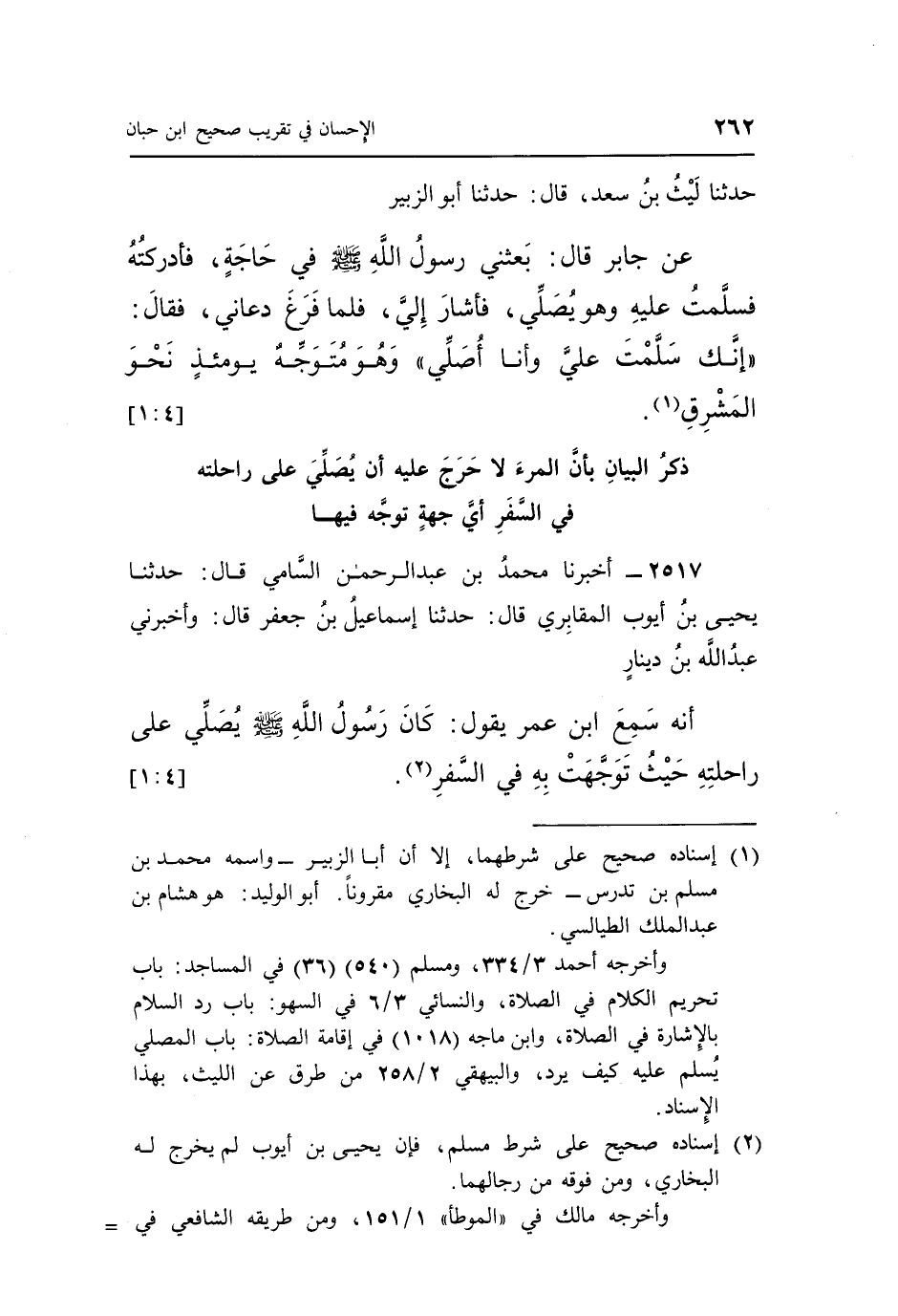 حَدَّثَنَا لَيْثُ بْنُ سَعْدٍ، قَالَ: حَدَّثَنَا أَبُو الزُّبَيْرِ، عَنْ جَابِرٍ، قَالَ: بَعَثَنِي رَسُولُ اللَّهِ صَلَّى اللَّهُ عَلَيْهِ وَسَلَّمَ فِي حَاجَةٍ، فَأَدْرَكْتُهُ فَسَلَّمْتُ عَلَيْهِ وَهُوَ يُصَلِّي، فَأَشَارَ إِلَيَّ، فَلَمَّا فَرَغَ دَعَانِي، فَقَالَ: «إِنَّكَ سَلَّمْتَ عَلَيَّ وَأَنَا أُصَلِّي» ، وَهُوَ مُتَوَجِّهٌ يَوْمَئِذٍ نَحْوَ الْمَشْرِقِ (¬1) . [4: 1]