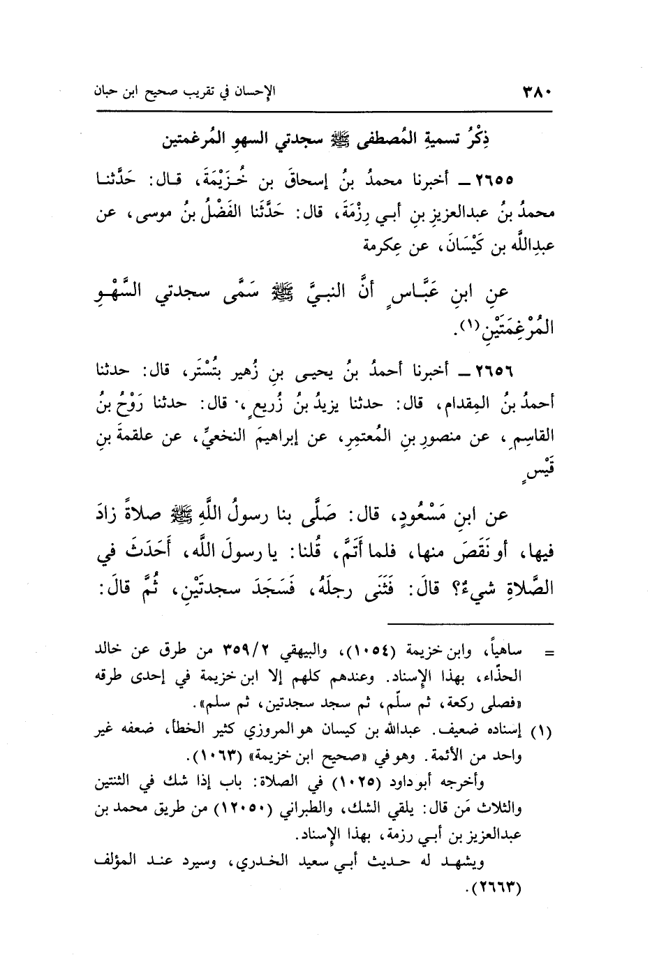 2655 - أَخْبَرَنَا مُحَمَّدُ بْنُ إِسْحَاقَ بْنِ خُزَيْمَةَ، قَالَ: حَدَّثَنَا مُحَمَّدُ بْنُ عَبْدِ الْعَزِيزِ بْنِ أَبِي رِزْمَةَ، قَالَ: حَدَّثَنَا الْفَضْلُ بْنُ مُوسَى، عَنْ عَبْدِ اللَّهِ بْنِ كَيْسَانَ، عَنْ عِكْرِمَةَ، عَنِ ابْنِ عَبَّاسٍ، «أَنَّ النَّبِيَّ صَلَّى اللَّهُ عَلَيْهِ وَسَلَّمَ سَمَّى سَجْدَتَيِ السَّهْوِ: الْمُرْغِمَتَيْنِ» (¬1) .