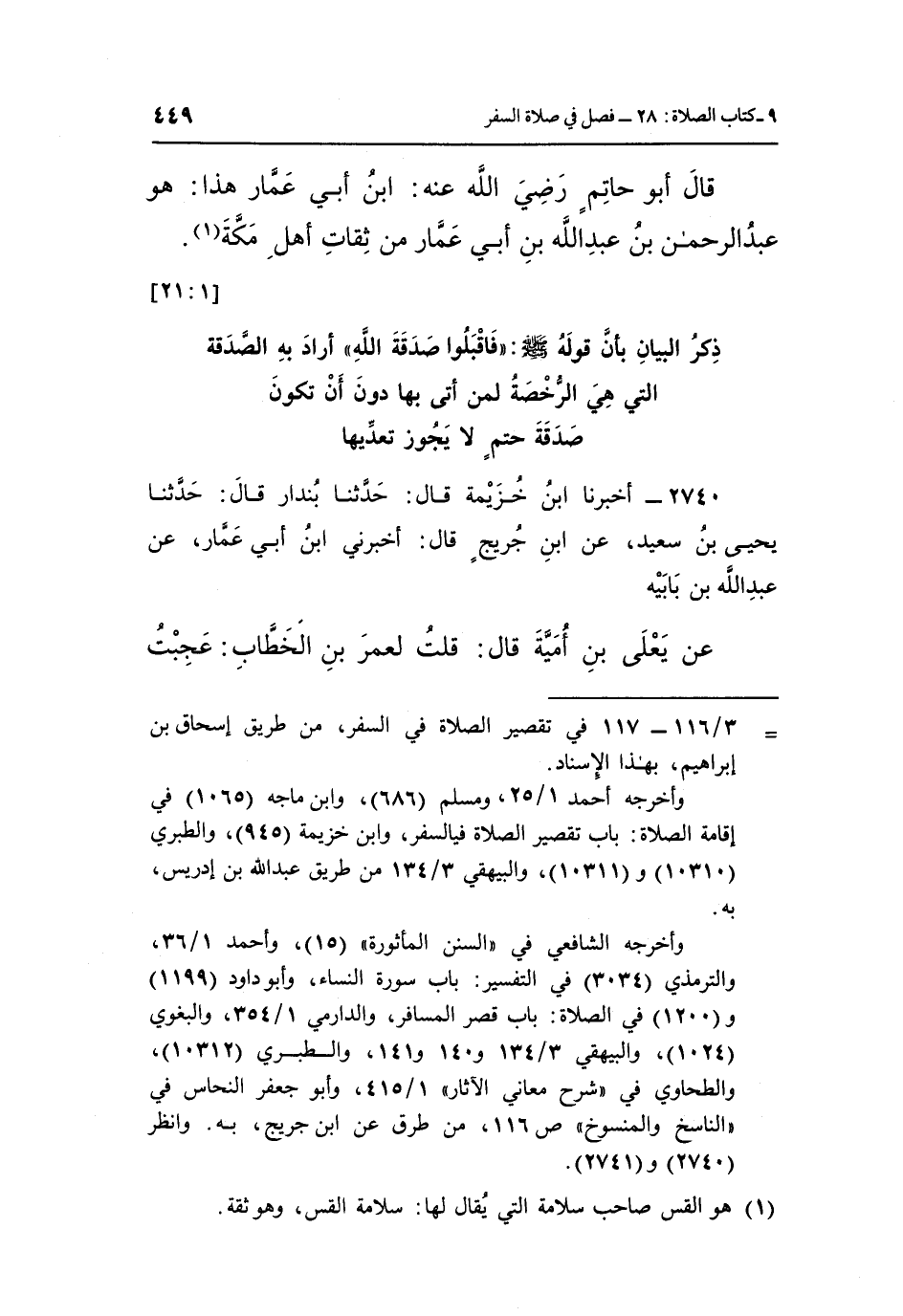 = 3/116-117 في تقصير الصلاة في السفر، من طريق إسحاق بن إبراهيم، بهذا الإسناد.