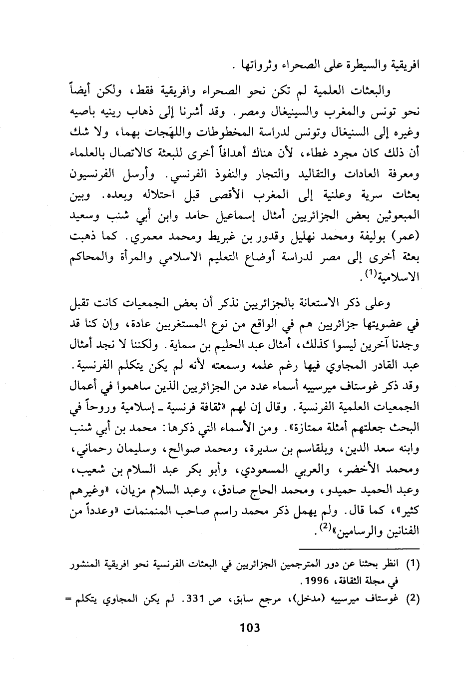 (¬1) انظر بحثنا عن دور المترجمين الجزائريين في البعثات الفرنسية نحو افريقية المنشور في مجلة الثقافة، 1996.