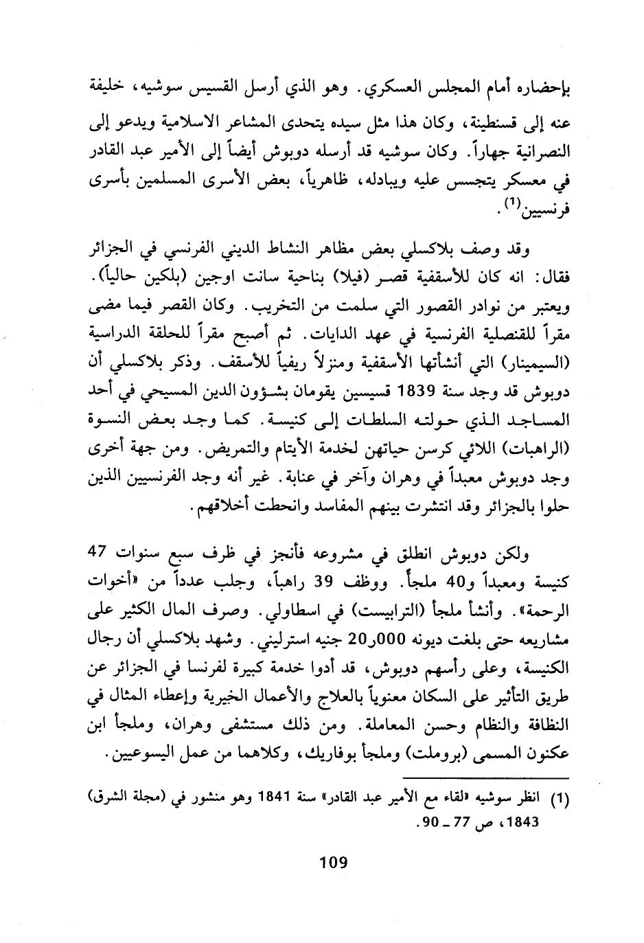 (¬1) انظر سوشيه (لقاء مع الأمير عبد القادر) سنة 1841 وهو منشور في (مجلة الشرق) 1843، ص 77 - 90.