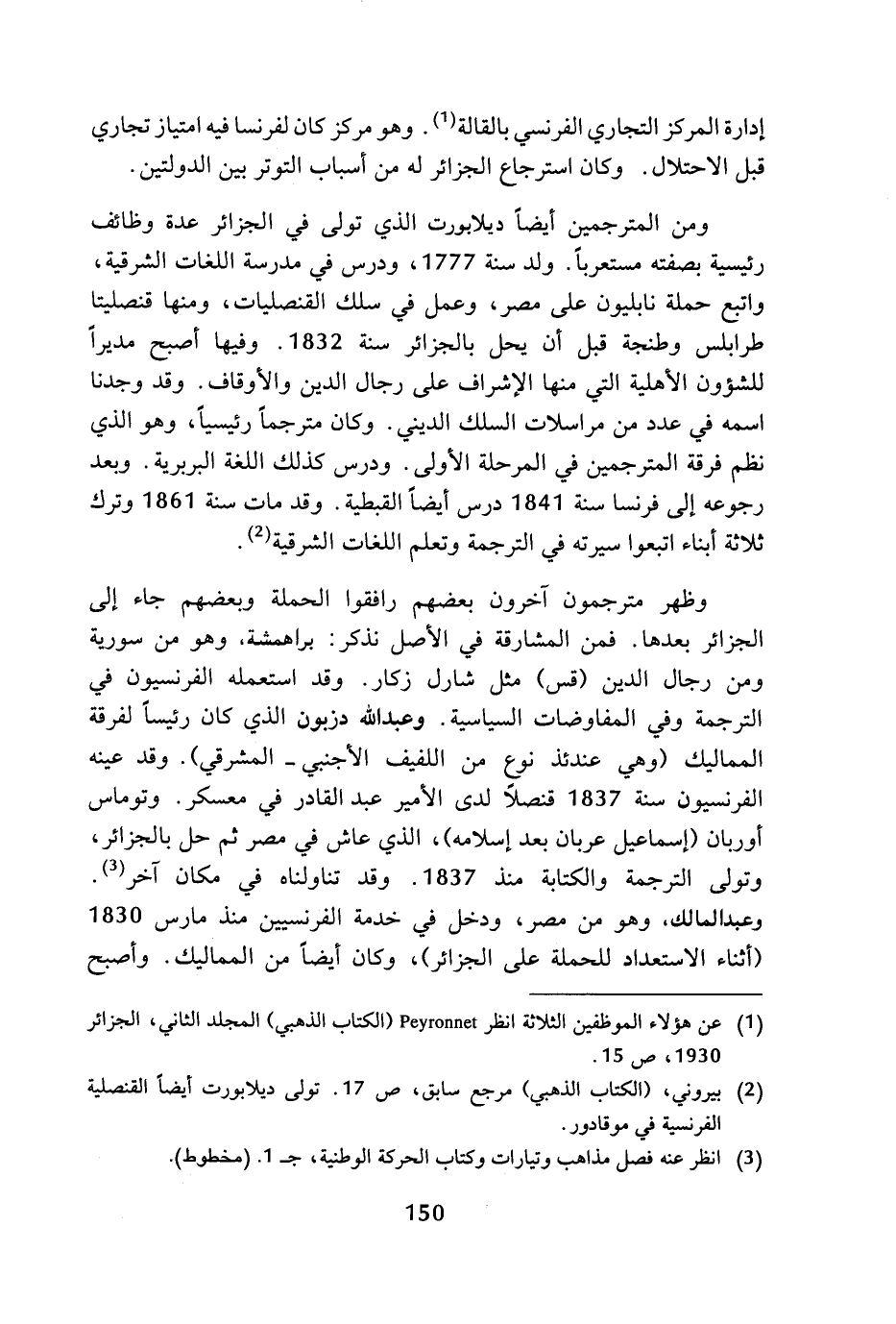 (¬1) عن هؤلاء الموظفين الثلاثة انظر Peyronnet (الكتاب الذهبي) المجلد الثاني، الجزائر 1930، ص 15.