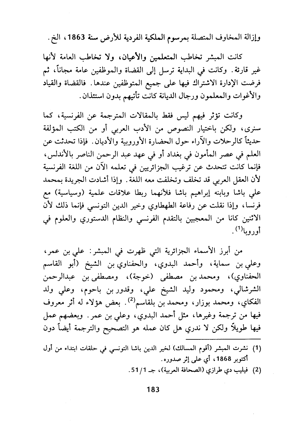 (¬1) نشرت المبشر (أقوم المسالك) لخير الدين باشا التونسي في حلقات ابتداء من أول أكتوبر 1868، أي على إثر صدوره.