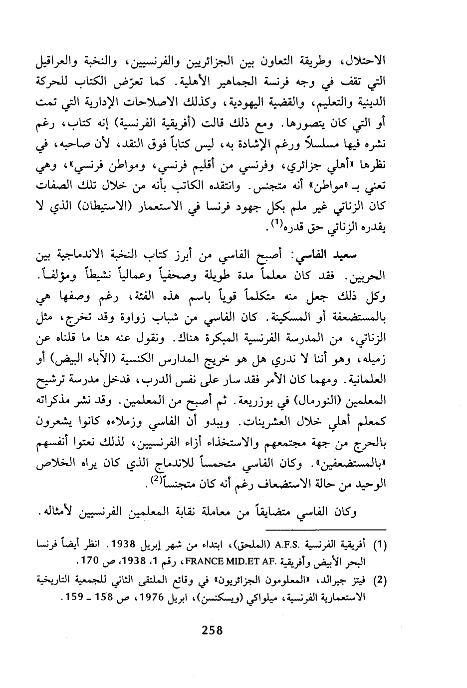 (¬2) فيتز جيرالد، (المعلومون الجزائريون) في وقائع الملتقى الثاني للجمعية التاريخية الاستعمارية الفرنسية، ميلواكي (ويسكنسن)، ابريل 1976، ص 158? 159.