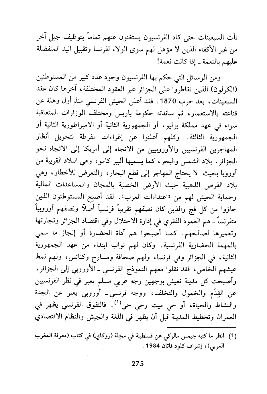 (¬1) انظر ما كتبه جيمس مالركي عن قسنطينة في مجلة (روكاي) في كتاب (معرفة المغرب العربي)، إشراف كلود فاتان 1984.