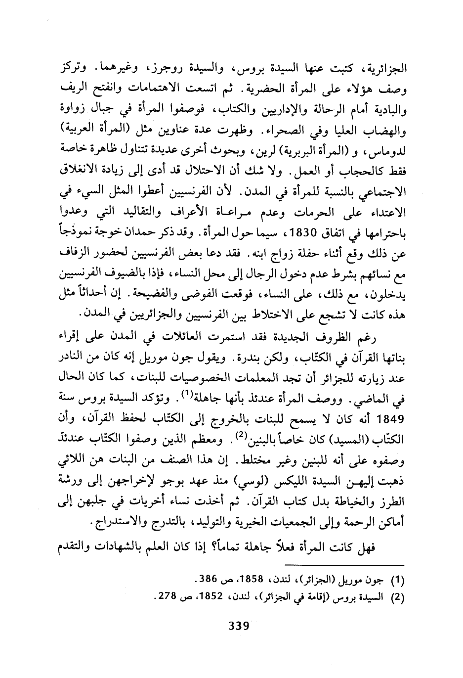 (¬1) جون موريل (الجزائر)، لندن، 1858، ص 386.
