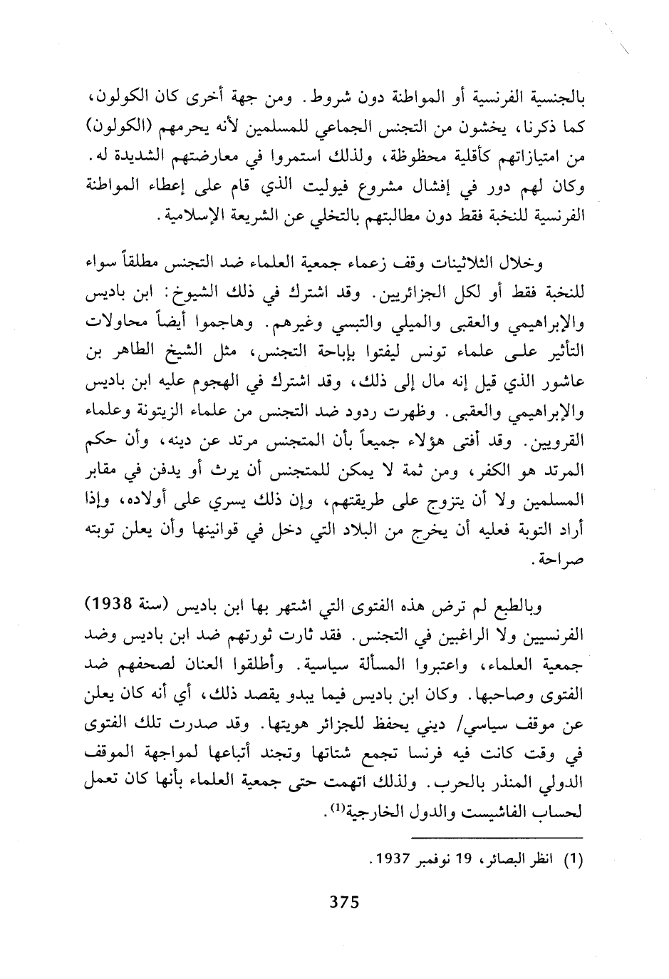 (¬1) انظر البصائر، 19 نوفمبر 1937.
