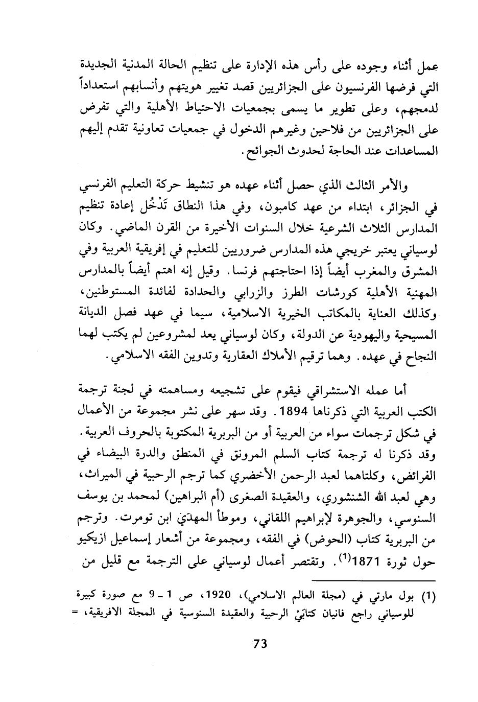 (¬1) بول مارتي في (مجلة العالم الاسلامي)، 1920، ص 1 - 9 مع صورة كبيرة للوسياني راجع فانيان كتابي الرحبية والعقيدة السنوسية في المجلة الافريقية، =