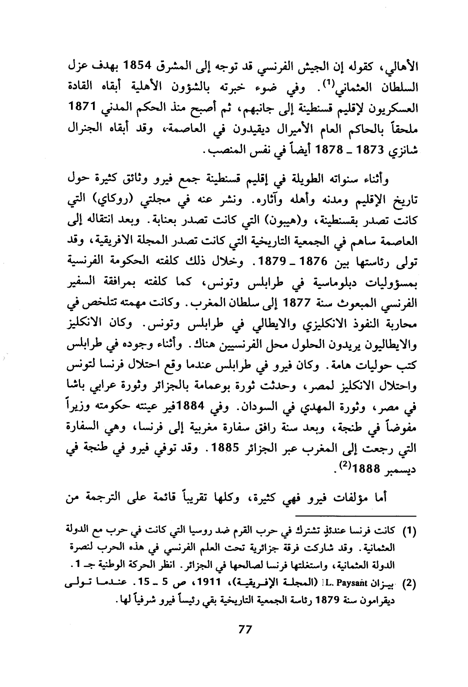 (¬2) بيزان L. Paysant (المجلة الإفريقية)، 1911، ص 5 - 15. عندما تولى ديقرامون سنة 1879 رئاسة الجمعية التاريخية بقي رئيسا فيرو شرفيا لها.