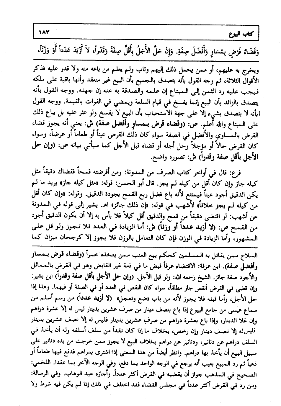 وقضاء فرض بمساو وأفضل صفة. وإن حل الأجل بأقل صفة وقدرا، لا أزيد عددا أو وزنا,