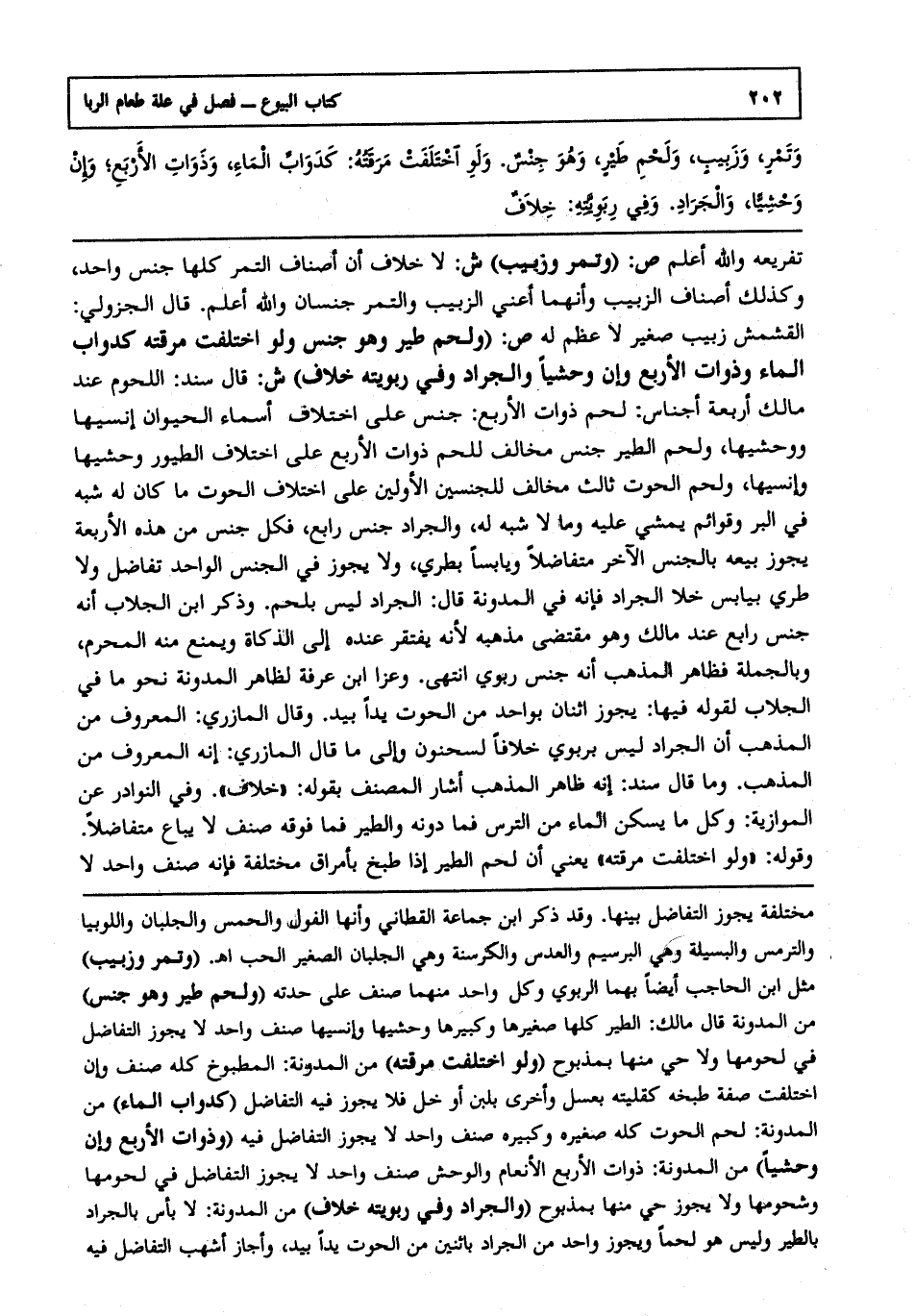وتمر، وزبيب، ولحم طير، وهو جنس. ولو اختلفت مرقته: كدواب الماء وذوات الأربع، وإن وحشيا، والجراد. وفي ربويته: خلاف