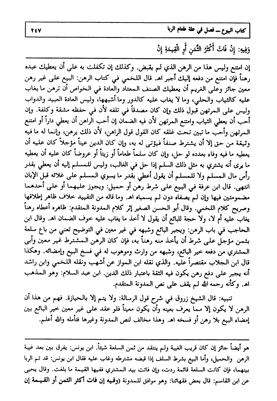 تنبيه: قال الشيخ زروق في شرح قول الرسالة ولا يتم إلا بالحيازة فهم من هذا أن الرهن لا يكون إلا مما يعرف بعينه وأن يكون معينا فلو عقد على غير معين خير البائع بين إمضاء البيع بلا رهن أو فسخه ا هـ. وهذا مخالف لنص المدونة وغيرها فتأمله، والله أعلم.
