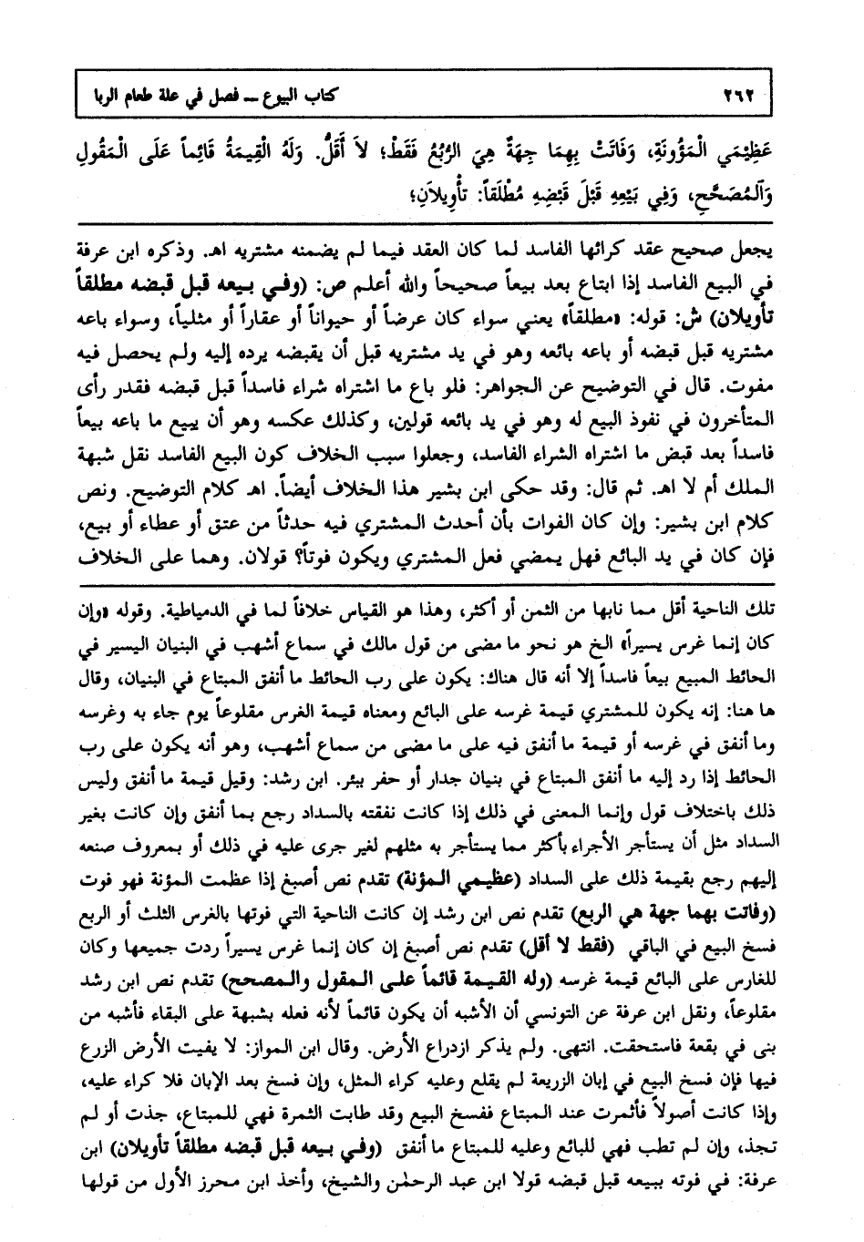 عظيمي المؤونة وفاتت بهما جهة هي الربع فقط لا أقل وله القيمة قائما على المقول والمصحح, وفي بيعه قبل قبضه مطلقا: تأويلان؛