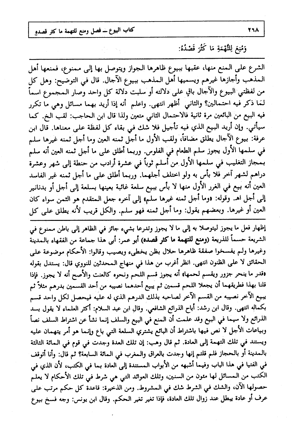 ومنع للتهمة ما كثر قصده: