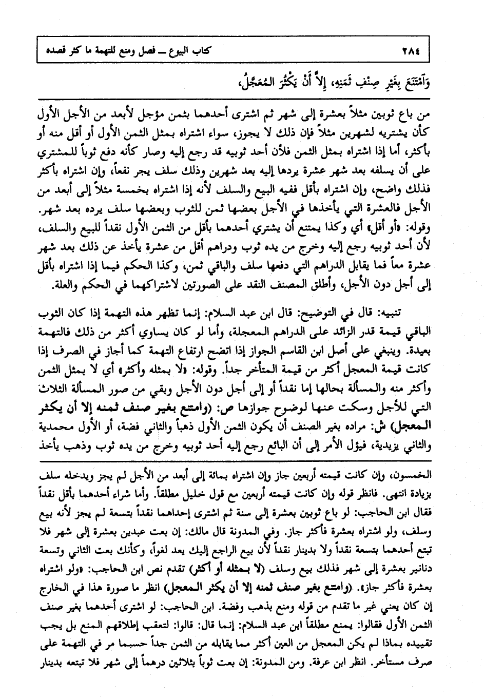 وامتنع بغير صنف ثمنه إلا أن يكثر المعجل,