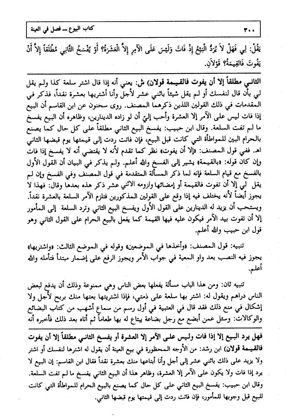 يقل: لي فهل لا يرد البيع إذا فات وليس على الآمر إلا العشرة؟ أو يفسخ الثاني مطلقا إلا أن يفوت فالقيمة؟ قولان.