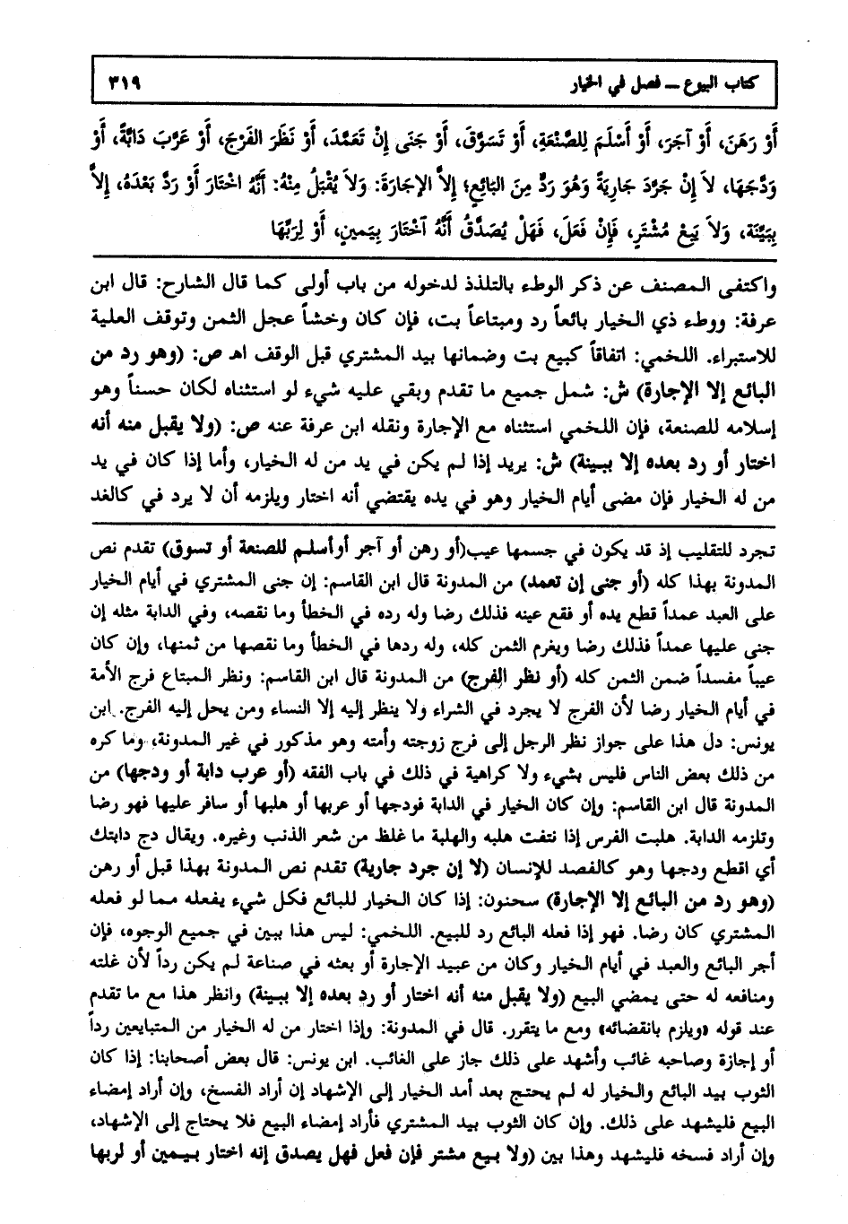 أو رهن أو آجر أو أسلم للصنعة, أو تسوق, أو جنى إن تعمد, أو نظر الفرج, أو عرب دابة, أو ودجها, لا إن جرد جارية وهو رد من البائع؛ إلا الإجارة: ولا يقبل منه: أنه اختار أو رد بعده إلا ببينة ولا يبع مشتر فإن فعل, فهل يصدق أنه اختاره بيمين, أو لربها