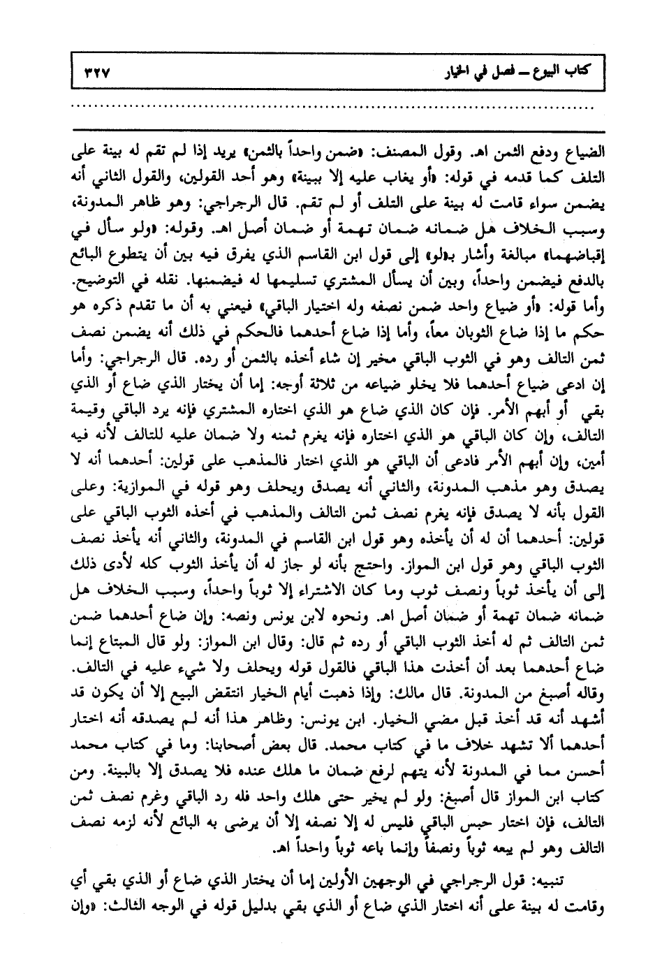 تنبيه: قول الرجراجي في الوجهين الأولين إما أن يختار الذي ضاع، أو الذي بقي أي وقامت له بينة على أنه اختار الذي ضاع، أو الذي بقي بدليل قوله في الوجه الثالث: "وإن